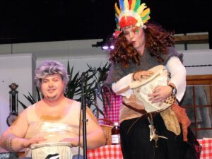Hier sorgen Marek Brucher und Annette Schwarz (alias Virgina Wunderbar) mit Mückenschisssalbe, Getrommel und schrägem Indianergeheul für Vergnügen.