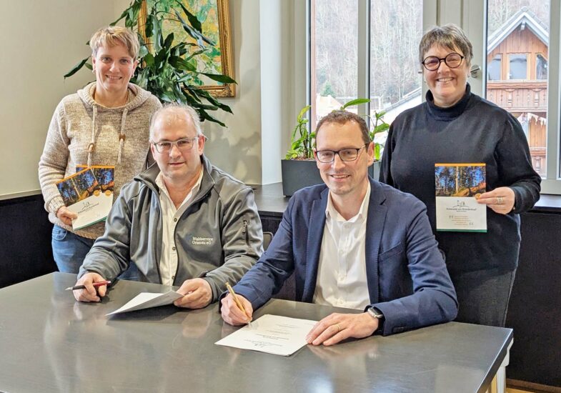 Bürger-meister Richard Weith und Kurt Weber, Geschäftsführer der Waldservice Ortenau eG, haben am vergangenen Mittwoch den Pachtvertrag für den „Ruhewald am Brandenkopf“ im Oberharmersbacher Rathaus unterzeichnet. Damit ist der Betrieb des neuen Bestattungswaldes offiziell besiegelt. Die feierliche Eröffnung findet am 29. März 2025 um 14 Uhr statt. Bereits ab dem 1. April sind Urnenbeisetzungen möglich.