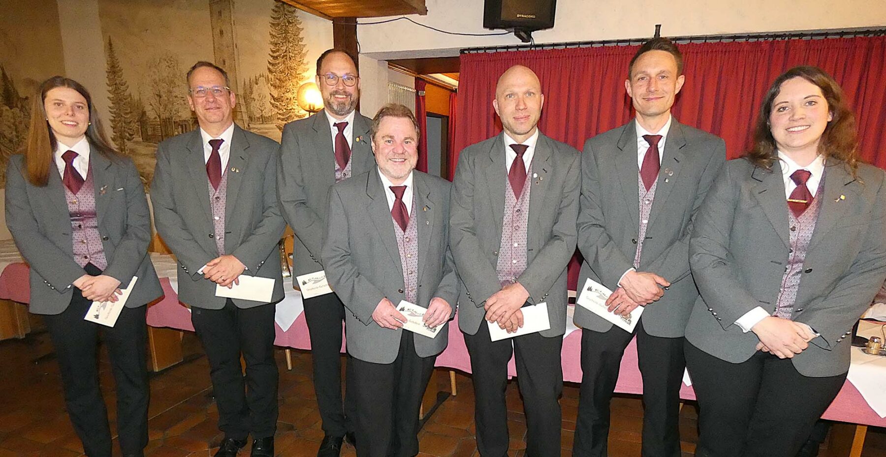 „Besonders stolz bin ich, wie gut wir als Ensemble zusammengewachsen sind“, unterstrich der Dirigent, „wir können stolz auf die Vielfalt und Qualität unserer gemeinsamen Leistungen sein.“ Das jedoch sei nur durch regelmäßige Probenbesuche möglich, „jeder einzelne Besuch und jedes Üben bringt uns als Kapelle weiter.“ Rüdiger Müller dankte jedem einzelnen der MusikerInnen für deren Arbeit, Hingabe und Leidenschaft für die Musik, desgleichen seinen drei Vertretern sowie dem langjährigen Notenwart Stefan Rombach.