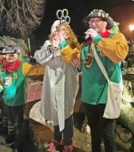 Nach erfolgreicher Schlüsselübergabe wurden die Oberharmersbacher Häs erweckt. Zunftmeister Claus Franke überreichte zudem der diesjährigen Mottokönigin Kathrin Lehmann die Mottokette. Nach dem Stellen des Narrenbaumes feierten die glücklichen Narren eine Narrennacht im Zelt sowie im Bärenkeller des Hotel Bären.