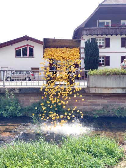 Mit Startschuss stürzen sich die durchnummerierten Plastikenten in den Harmersbach und liefern sich ein packendes Rennen um attraktive Preise. Jede Startnummer steht für ein Los und damit für die Chance auf einen der begehrten Gewinne. Die Enten wurden im Vorfeld gründlich trainiert und sind bereit, alles zu geben.