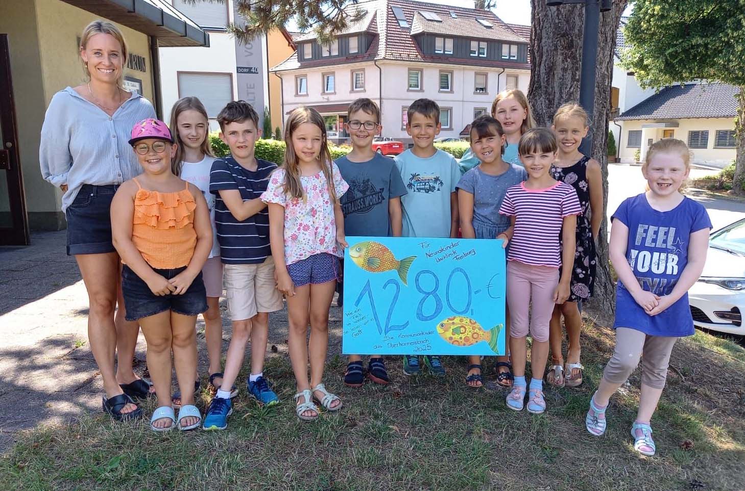 Anlässlich ihrer Erstkommunion sammelten sie Spenden in Höhe von 1.280 Euro. Den Betrag überreichten sie am vergangenen Freitag an den Förderverein Neurokinder der Uniklinik Freiburg e.V.