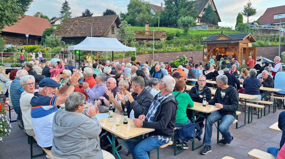 Auch am letzten Abend reist die „Flammenkuchenbäckerei Platz“ an und bereitet vor Ort ihre beliebten drei Varianten mit Speck, Tomaten & Mozzarella oder Lachs & Lauch zu, während die Fördervereine des Kinderhaus Sonnenblume und des Schwimmbads die Bewirtung mit Wurstsalat, badischem Zweierlei, Bibiliskäs mit Brot, kalten Getränken und Aperol Spritz übernehmen. Die Bewirtung startet bereits