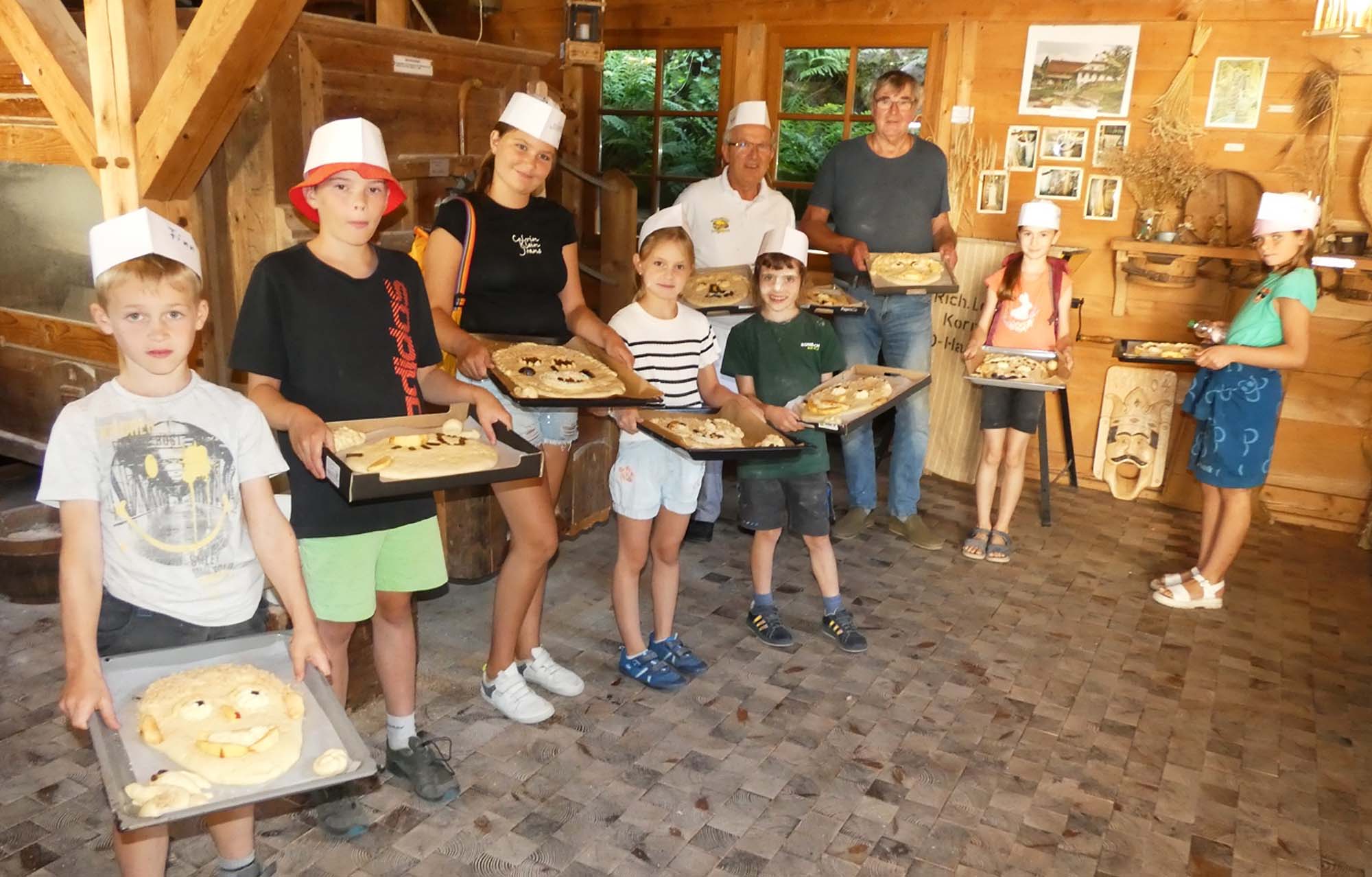 Beim Kindersommer in Oberharmersbach haben acht kleine Nachwuchsbäcker selbst Hand angelegt. Die alten Mühlentechniken und das kreative Backen mit Bäckermeister Franz Lehmann sorgten für viel Spaß.