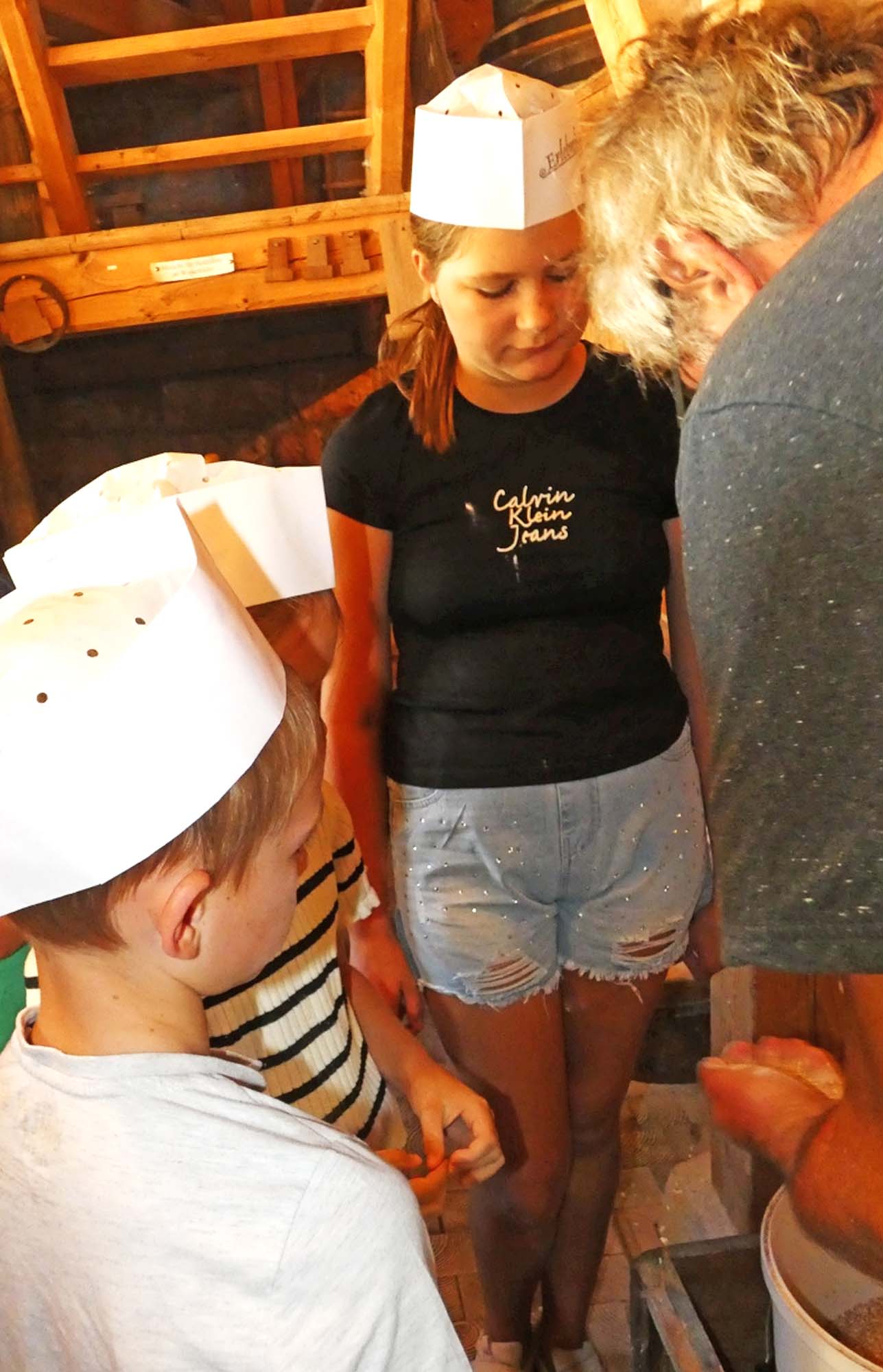 Vom Korn zum Teig: Kinder erleben zusammen mit Franz Lehmann das Backhandwerk in der alten Mühle