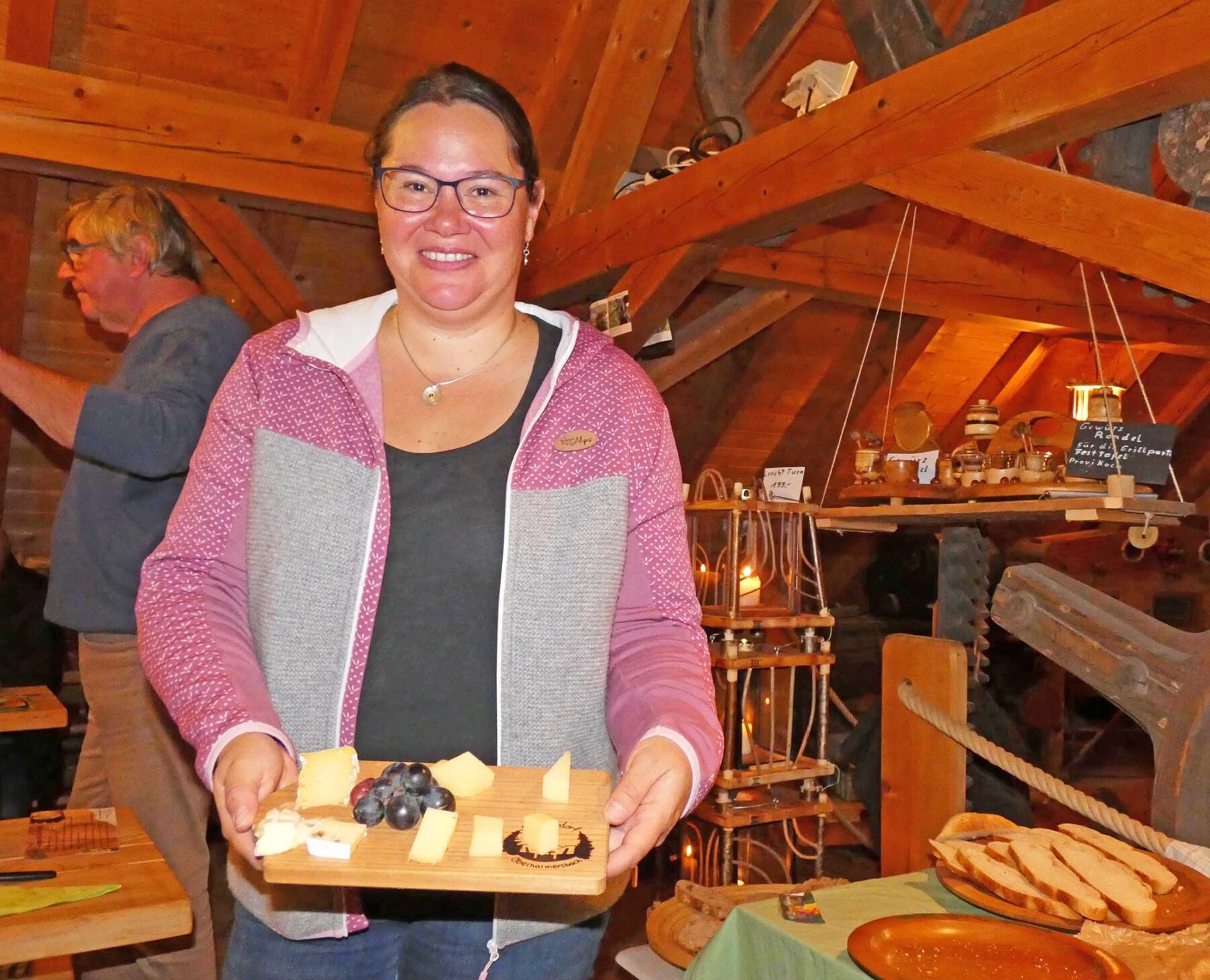 Schon beim Betreten der Alten Mühle duftete es am vergangenen Freitagabend nach würzigem Käse und frischem Brot. Die Aromen locken die schmale Holzstiege hinauf: Dorthin, wo früher der Müller das Korn in den Trichter schüttete, auf dass es zwischen den beiden Mahlsteinen zu Mehl gerieben werde. Dorthin, wo der Duft nun regelrecht betörend wird.