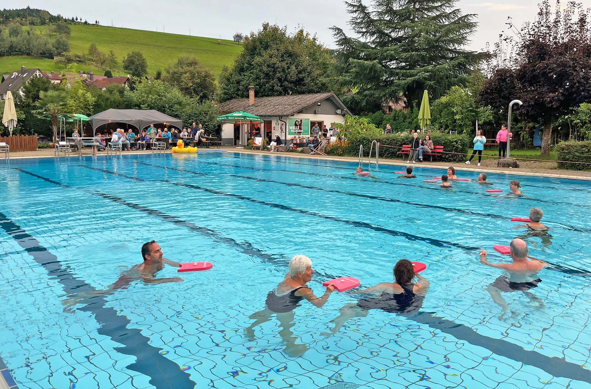 Am vergangenen Freitag wurde in Oberharmersbach der Abschluss der Badesaison im Freibad gefeiert. Auch wenn dieses noch bis einschließlich Dienstag, 16. September 2025, geöffnet ist, traf sich das Grüppchen der Harmersbacher Stammschwimmerinnen und -schwimmer bereits zum traditionellen Abbaden. Schwimmbretter wurden mit Kerzen beleuchtet, und es wurden Bahnen durchs Becken gezogen – ein stimmungsvolles Bild, das von zahlreichen weiteren Gästen, die trotz der kühleren Temperaturen den Weg ins Bad gefunden hatten, mit Applaus bedacht wurde.
