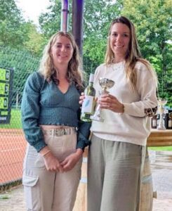 Sportwartin Kristin Lehmann (links) gratuliert Theresa Lehmann (rechts) zu ihrem ersten Clubmeistertitel.