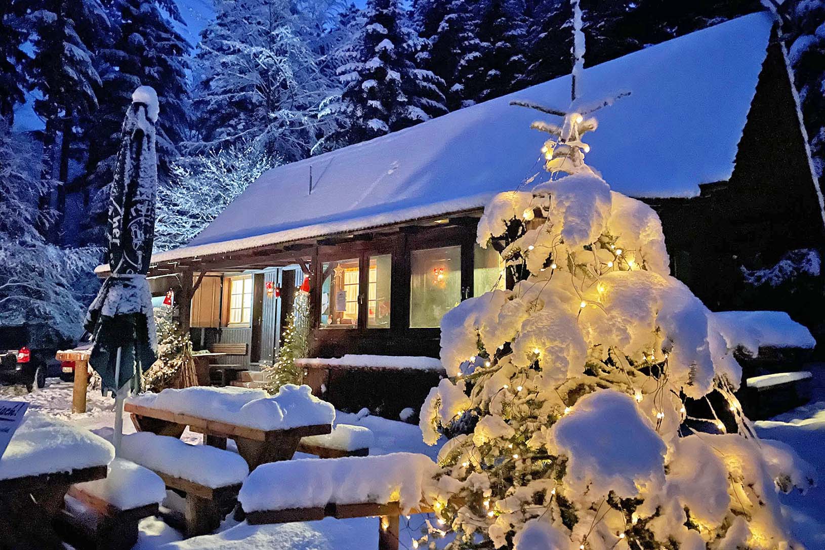 Samstags und sonntags gibt es ab 14 Uhr Glühwein, Waldspeck und Stockbrot.
