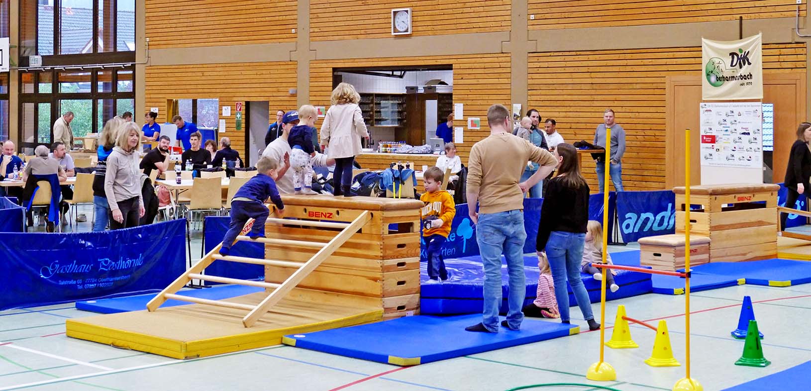 Kürzlich begrüßte die DJK viele Familien zum traditionellen Sport-, Spiel- und Spaßnachmittag in der Reichstalhalle. Ab 14 Uhr konnten die Kinder an verschiedenen Tischtennisplatten den Schläger schwingen. Beim Turn-Parcours und bei den Geschicklichkeitsspielen ging es hoch her. In der Bastelecke wurde kreativ gewerkelt.