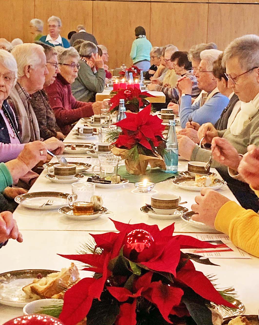 Foto: Franz HuberZahlreiche Gäste kamen ins adventlich geschmückte Pfarrzentrum St. Gallus, wo das Leitungsteam einen Nachmittag zum Thema „Engel“ gestaltete. Begleitet von Musik, gemeinsamen Liedern und einem besinnlichen Text bot die Feier einen warmen Auftakt in die Adventszeit. Es waren auch etliche „Neulinge“ dabei – Gäste, die zum ersten Mal am Seniorennachmittg teilnahmen.