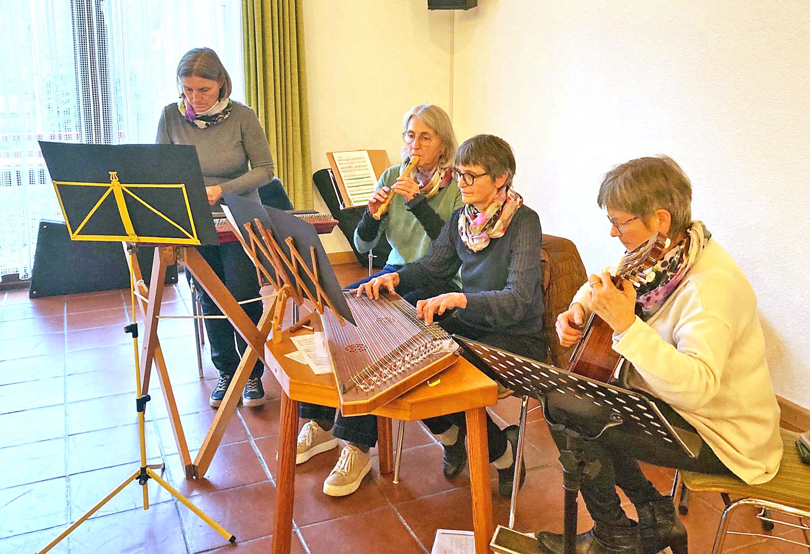 Die weitere Gestaltung des Nachmittagsprogramms übernahmen die Mitglieder der Stubenmusik Oberharmersbach mit Agnes Serrer (Gitarre und Gesang), Sonja Lehmann (Zither), Christiane Lehmann (Flöte und Gesang) sowie Tamara Laifer (Hackbrett). Passend zur Adventszeit unterhielten sie die Gäste mit Musik und Liedern.