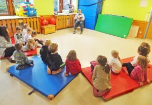 Foto: Kinderhaus SonnenblumeBei frostigen Temperaturen machten es sich Vorleser und Kinder kürzlich im Kinderhaus Sonnenblume gemütlich. Die katholische öffentliche Bücherei beteiligte sich nach einem Jahr Pause wieder am bundesweiten Vorlesetag.