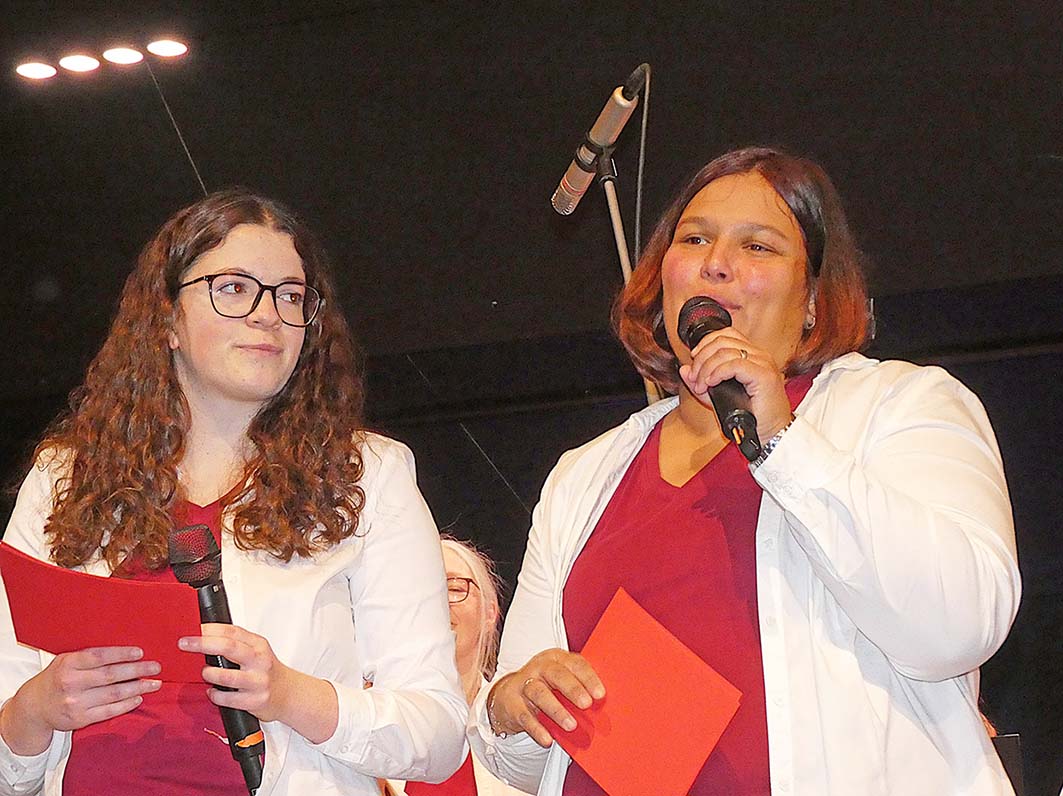 Nach einer kurzen Umbauphase übernahm der aus inzwischen 37 Frauen und Männern bestehende Erwachsenenchor das Bühnengeschehen, und die Moderatorinnen verkündeten: „Jetzt kommt die beste Mischung aus Rhythmus, Freude und einem Hauch „Hurra, wir singen!“.