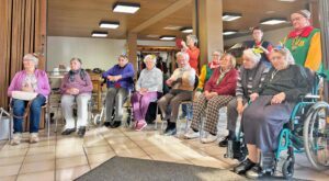 Kinder vom DJK-Turnen besuchen Senioren des Sozialen Netzwerks.