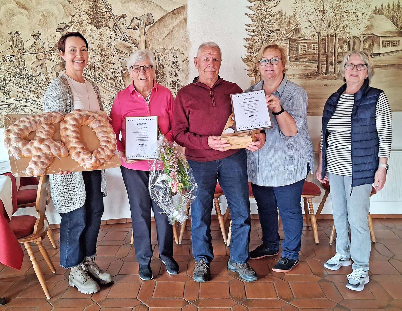 Ein weiterer Höhepunkt waren die Ehrungen langjähriger Mitglieder: Hermann Schwendenmann wurde für 25 Jahre, Ingrid Nock für 40 Jahre Treue zum VdK ausgezeichnet.
