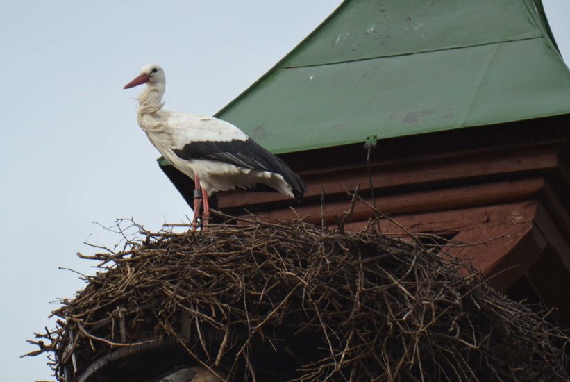Karl-Heinz Nock hat die Ankunft im Bild festgehalten und mit seinem Spektiv festgestellt, dass ess sich zumindest bei einem der Tiere um einen alten Bekannten handelt. Der Storch auf dem Storchenturm nistete letztes Jahr mit Partner/in auf der Alten Kanzlei. Den Storch auf der Alten Kanzlei konnte er gestern noch nicht zuordnen.