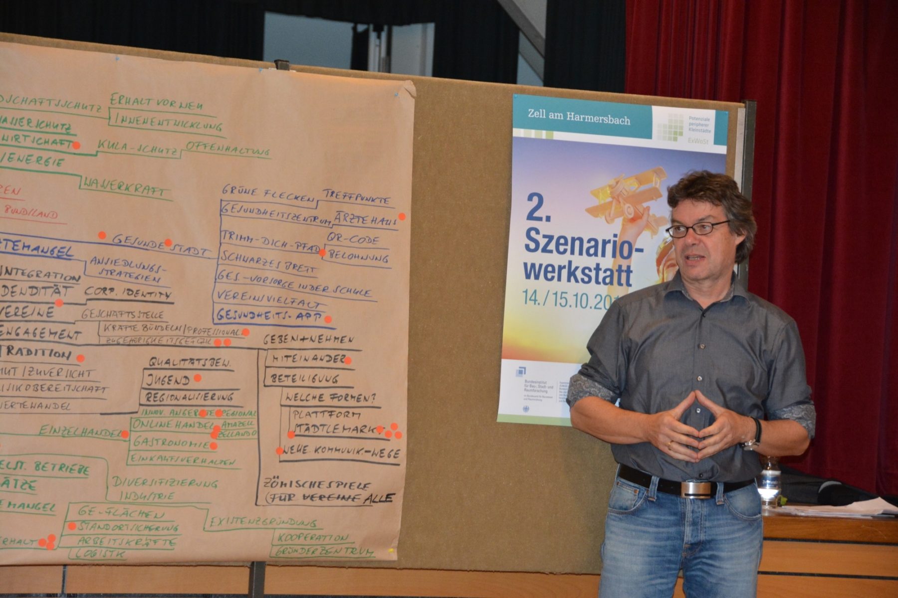 Foto: Hanspeter Schwendemann»Die Szenarien sind nichts Ausschließliches sondern können jeweils für sich Teil einer großen Gesamtstory sein«, betonte Professor Dr. Peter Dehne, der das bundesweite Forschungsprojekt »Potenziale von Kleinstädten in peripheren Lagen« leitet. Gemeinsam mit Dr. Jens Hoffmann und Heidrun Hiller von der Hochschule Neubrandenburg war er zur zweiten Szenario-Werkstatt nach Zell gekommen, die am Freitag und Samstag im Dorfgemeinschaftshaus Unterentersbach durchgeführt wurde. Nach dem Start am 16. und 17. März mit der »Szenariowerkstatt 1« sowie der großen Bürgerversammlung am 10. Juni war dies nun der nächste Schritt, um ein Zukunftsbild für Zell am Harmersbach zu entwerfen.