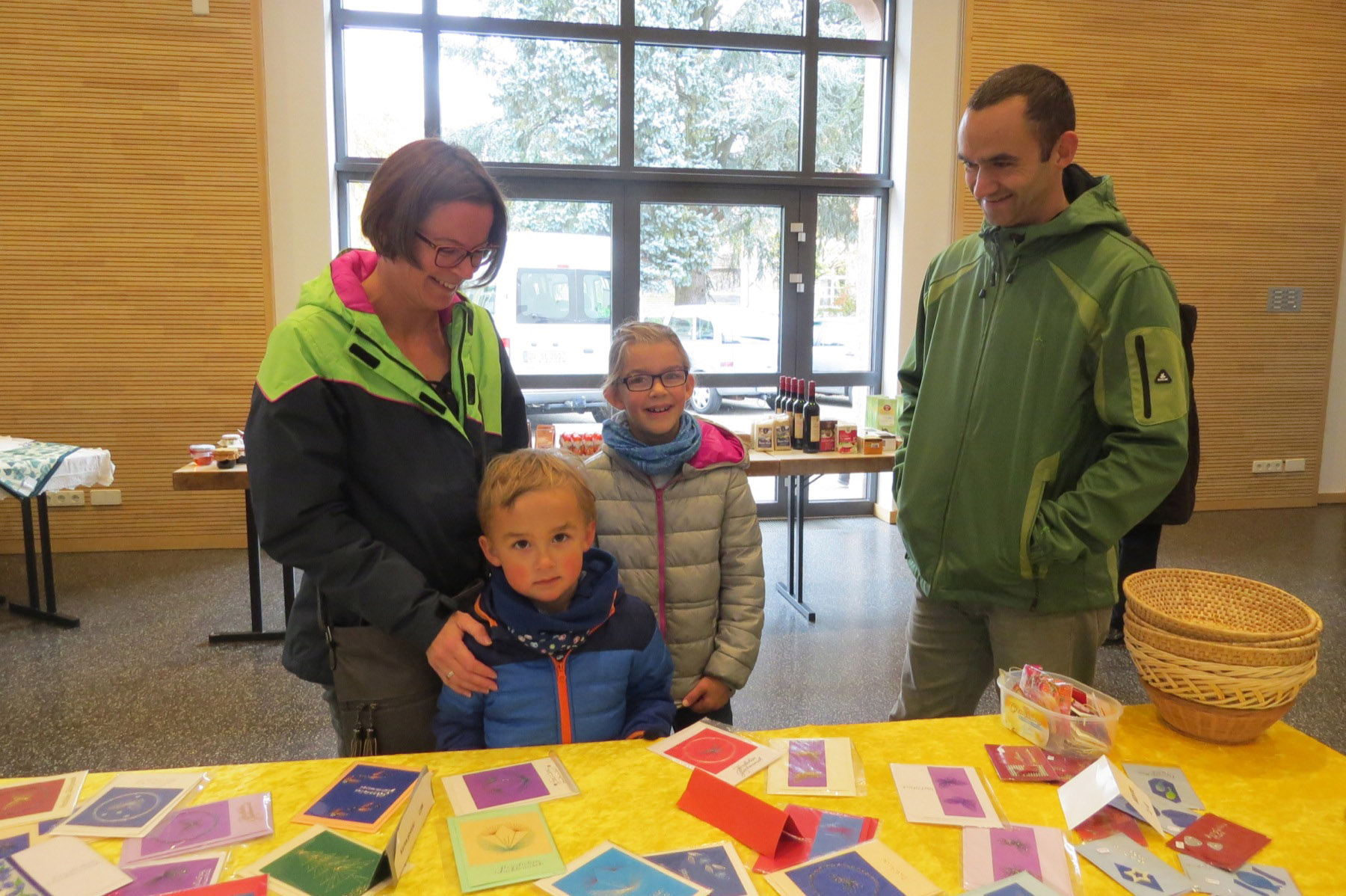 Foto: Gisela AlbrechtAuch die Waren aus fairem Handel fanden ihre Abnehmer. Am Nachmittag konnte man bei selbstgebackenem Kuchen zusammensitzen oder auch Kuchen mit nach Hause nehmen. Die Filzpantoffeln von Ria Pfundstein waren auch in diesem Jahr wieder der Verkaufsschlager. Bereits am Samstagabend wurden so viele Exemplare verkauft, dass am Sonntag nur noch einzelne Schuhpaare angeboten werden konnten. Bei den selbstgestrickten Socken konnten die Frauen immer wieder nachlegen, wenn das Sortiment reduziert war.