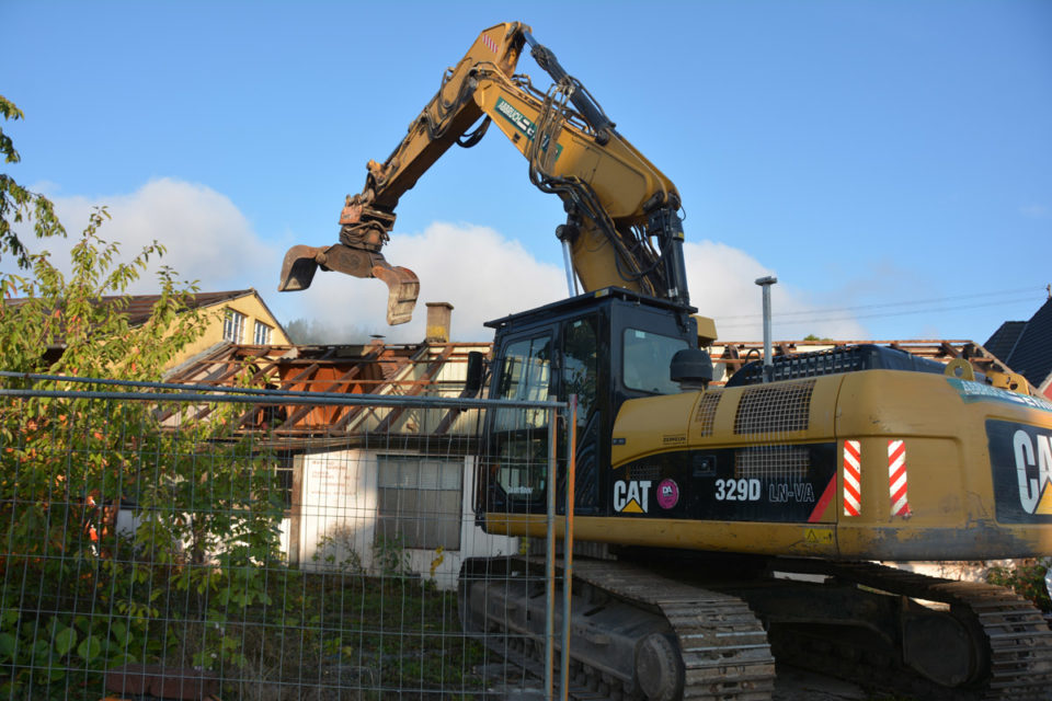 »Die Situation wird insgesamt verbessert«, begrüßte Bürgermeister Günter Pfundstein am heutigen Montagmorgen den Start der Abbrucharbeiten. Teilweise wurden die Eternitplatten schon abgebaut und als Sondermüll verpackt. Die weiteren Baustoffe müssen ebenfalls noch sortiert und teilweise dem Recycling zugeführt werden. Bis Ende der Woche werden die Lagerschuppen dann endgültig aus dem Stadtbild verschwunden sein.
