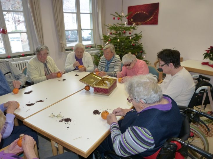 Die vielfältig aktivierende Weihnachtsbäckerei wird selbstverständlich ebenfalls eingebunden – mal duftet es in der Sozialstation nach Christstollen, mal nach Rosinenmännern oder Lebkuchengebäck.