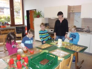 Groß war dann die Begeis­terung, als die Küche fertiggestellt war. Schon wenige Tage später wurde fleißig gebacken und der neue Herd mit Umluft zeigte, was er leisten kann. Und die ersten Weih­nachtsplätzchen sind für unseren Schulleiter Martin Teufel, der sich mit viel persönlichem Engagement für die neue Küche eingesetzt hat.