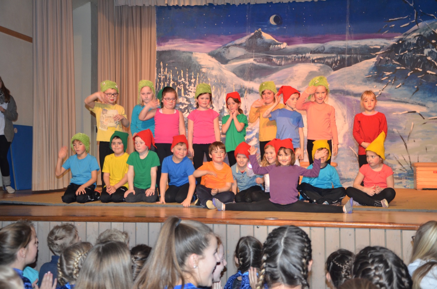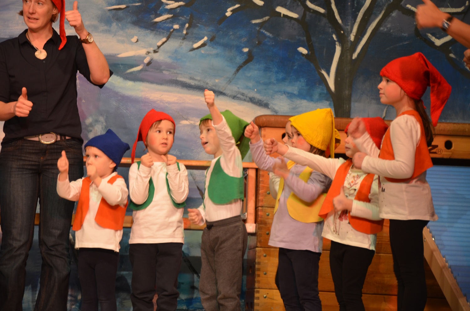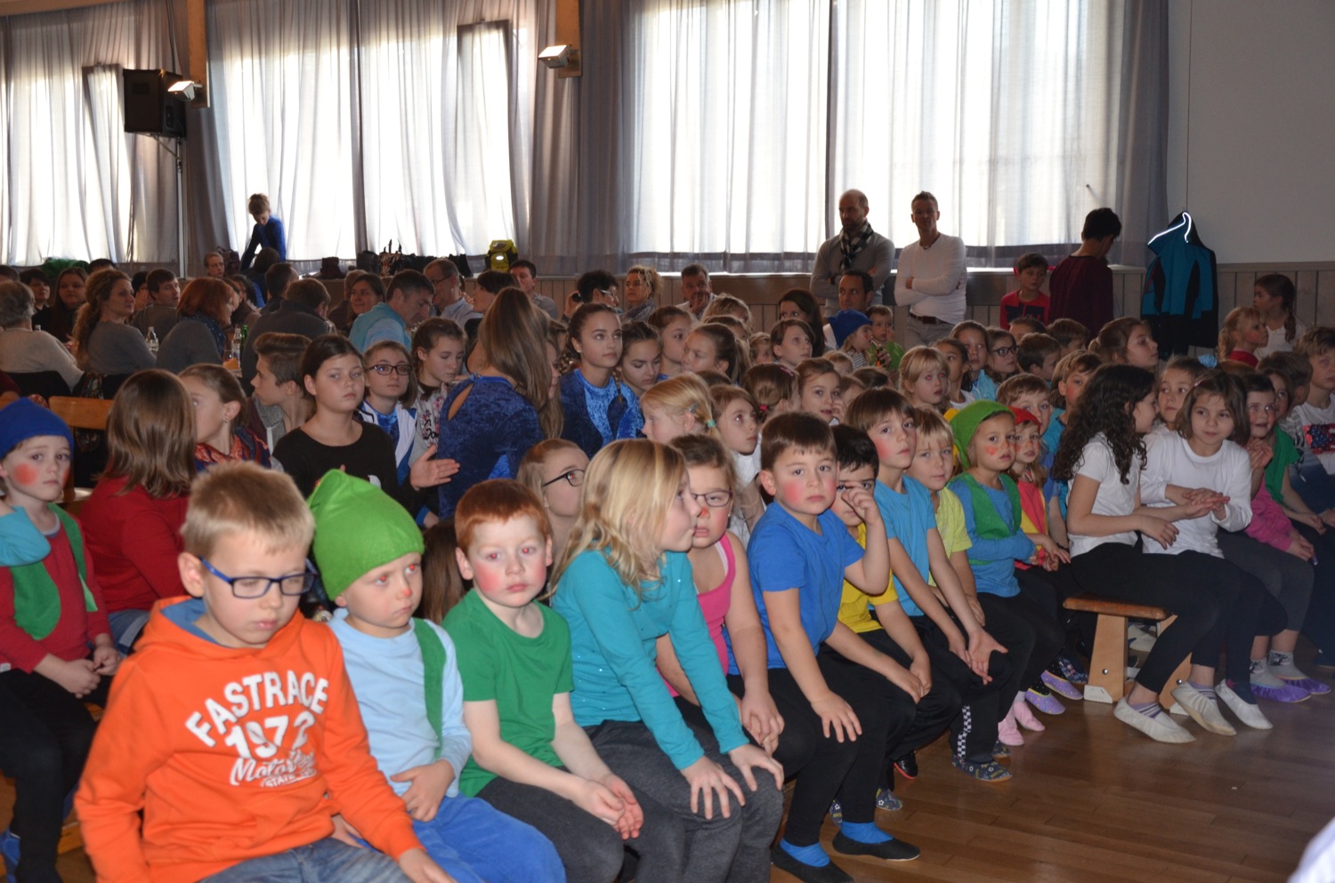 Der Nachwuchs beim TV Zell zählt 310 Turnschüler zwischen null und 18 Jahren. In 14 verschiedenen Sportstunden werden diese von 28 Übungsleitern trainiert. Klein beginnen die Jüngsten: Spielerisch tasten sie sich an Sportgeräte heran und trainieren mutiges und sicheres Bewegen in Gerätelandschaften. Übungsleiterin Claudia Sapparth und das TV-Geräte-Kommando stellten am Sonntag Hängebrücke, Rutschbahn und schiefe Kletterebene auf der Bühne zusammen. Die Kleinkinder zeigten, als Zwerge verkleidet, wie gut ihnen diese Übung schon gelingt und ihre Freude dabei war einfach ansteckend.