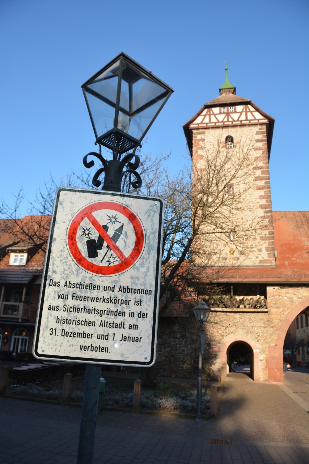 In historischen Altstädten ist in ganz Baden-Württemberg an Silvester das Abbrennen von Feuerwerkskörpern aus Sicherheitsgründen verboten. Um dies zu unterstreichen, hat der Gemeinderat eine entsprechende Allgemeinverfügung erlassen. Außerdem weisen seit gestern insgesamt vier Hinweistafeln rund um die Zeller Innenstadt auf das Verbot hin. »Ich hoffe, die Leute halten sich daran«, appelliert Bürgermeister Pfundstein an die Vernunft der Bevölkerung und bittet gleichzeitig darum, dass außerhalb des Sperrbereichs die Reste des Schützenfestes zur Jahreswende wieder mitgenommen werden.