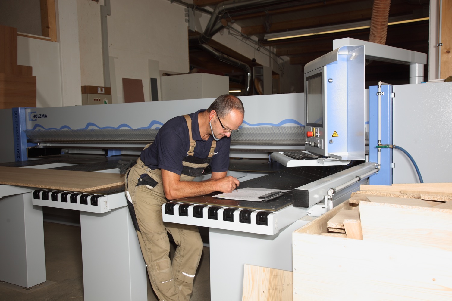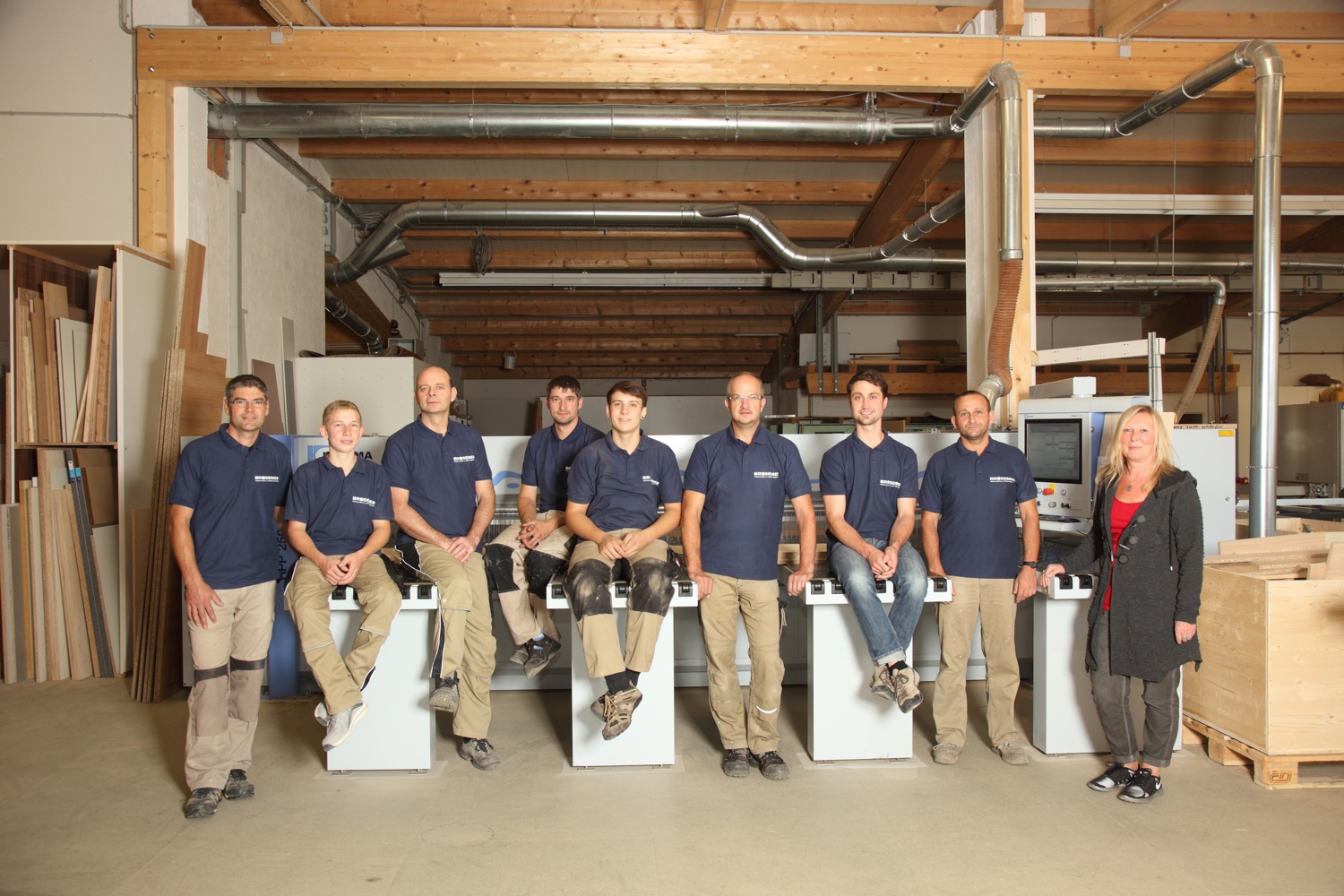 Aktuell sind zwei Meister, drei Gesellen, drei Lehrlinge sowie eine kaufmännische Teilzeitangestellte im Unternehmen beschäftigt. Hier besteht die Besonderheit, dass alle Schreiner und auch die Auszubildenden den gesamten Maschinenpark bedienen und so Aufträge vom Zuschnitt bis zur Montage selbständig ausführen.