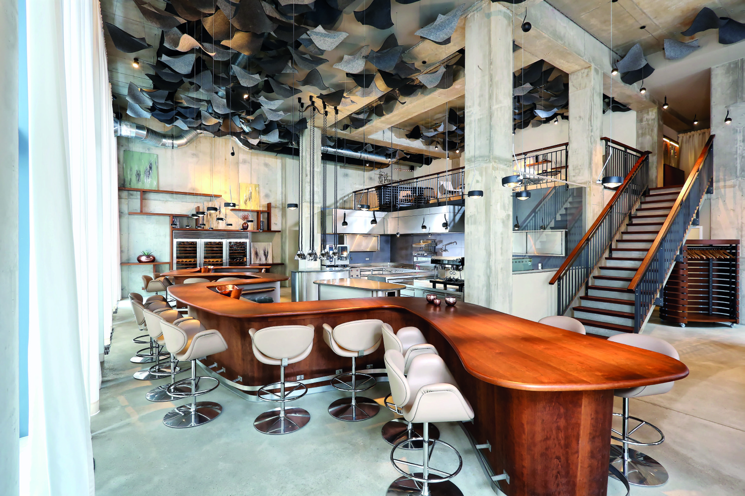 Eine besondere produktionstechnische Herausforderung war im Jahr 2015 das Restaurant des 3-Sterne-Kochs Kevin Fehling »The Table« in Hamburg. Herzstück des Restaurants ist ein einzelner, geschwungener Tresen aus Kirschbaumholz, an dem bis zu 20 Personen Platz finden. Solche individuellen Aufträge stecken immer voller Span- nung und Spaß an der Arbeit.