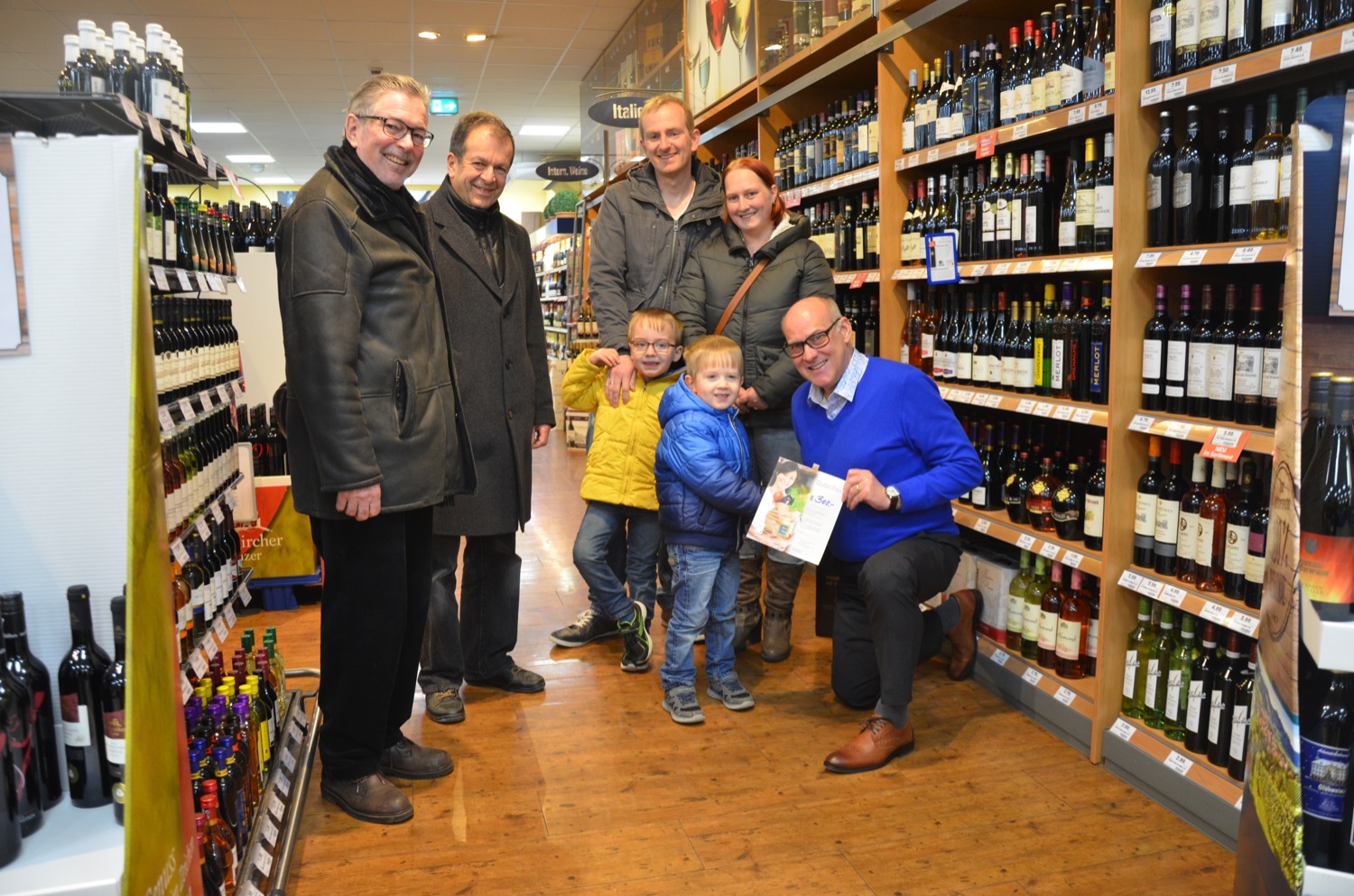 »Ich habe den Hauptpreis gewonnen«, verkündete der vierjährige, glückliche Felix mit kindlicher Vorfreude der Zusammenkunft. Mit Mama Barbara Albrecht, Papa Stefan Albrecht und Bruder Jonas war er zum Treffen mit Lions-Präsident Herbert Vollmer und Vizepräsident Reinhold Bauer in den Edeka-Markt Bruder gekommen.