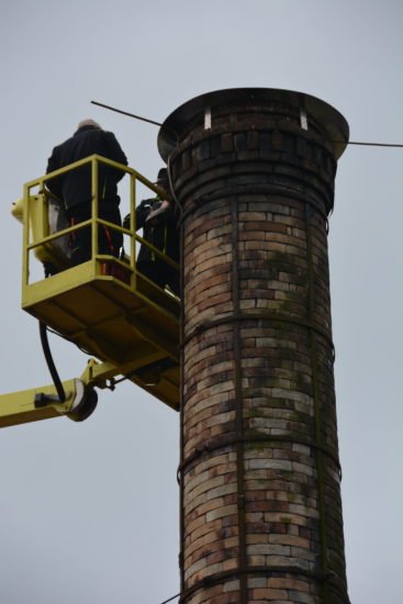 Damit möglicherweise ein Storchennest den Beginn der bevorstehenden Baumaßnahmen nicht blockiert, wurde vom Betriebshof der Stadt Zell auf dem Kamin des Keramikrundofens ein Blechdeckel installiert. Im Frühjahr 2016 hatte sich dort ein Storchenpaar »wild« niedergelassen. Das leere Nest wurde nun von den Betriebshofmitarbeitern entfernt. Die installierte Abdeckung läuft nach oben kegelförmig zu, so dass es für die Störche kaum eine Möglichkeit bietet, sich auf dem Kamin neu einzurichten. Meister Adebar muss sich einen neuen Standort suchen und dürfte der Sanierung des markanten Industriedenkmals nicht im Wege stehen. Außerdem, so Betriebshofleiter Erwin Pfaff, habe die Abdeckung den Nebeneffekt, dass künftig kein Schmutz und kein Regenwasser mehr ins Innere des Gebäudes gelangt.