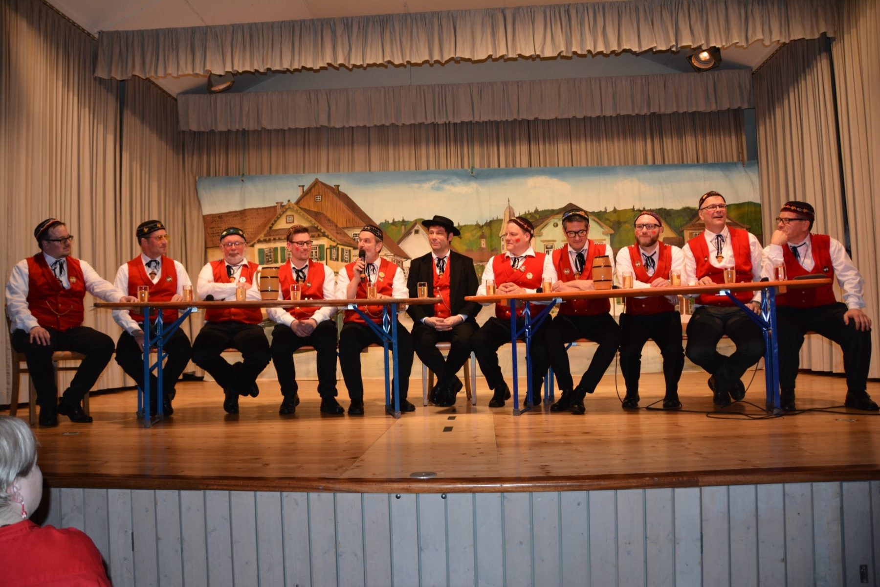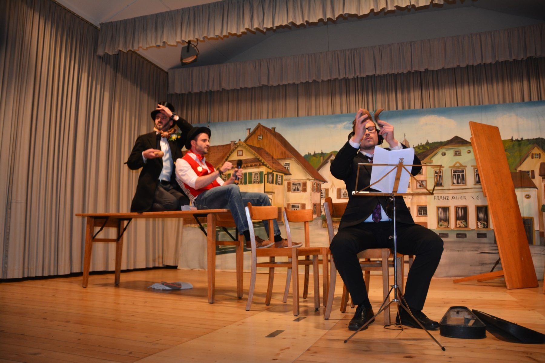 Die »sibirische Kälte« machte den drei Dorf-Deppen zu schaffen, da half auch am Frieder seine Wollunterhose nicht. Allerdings, die Gosch der drei Dörfle-Originale war nicht zugefroren. In bestem »Zeller Ditsch« »verluschterten« sie die neue Narrenrats-Attraktion am Bahnhof und die Deppen hatten auch genau aufgepasst, was der Zeller Bürgermeister allwöchentlich im Amtsblatt bekannt gibt. »Mull schwätz oder Buggel schaff«, machten sich die Deppen ihren Reim darauf. »Bohnomtlich« sei nun auch, dass die Hombe »rumdrillt« wird. Dort gibt es einen schönen Kahlschlag, wie bei einem »Rieslos«. Herrlich, diese drei tratschenden und verschmitzten Dorfdeppen – die mit dazu beitragen, dass der Dörfle-Abend so einmalig ist.