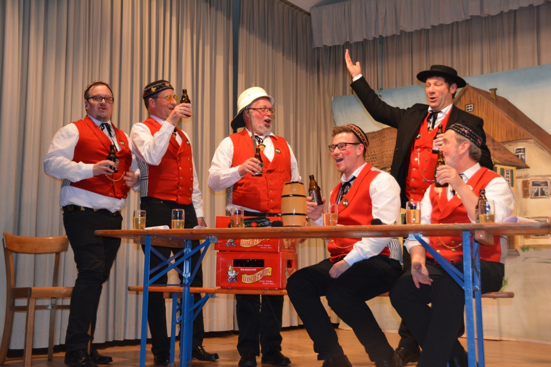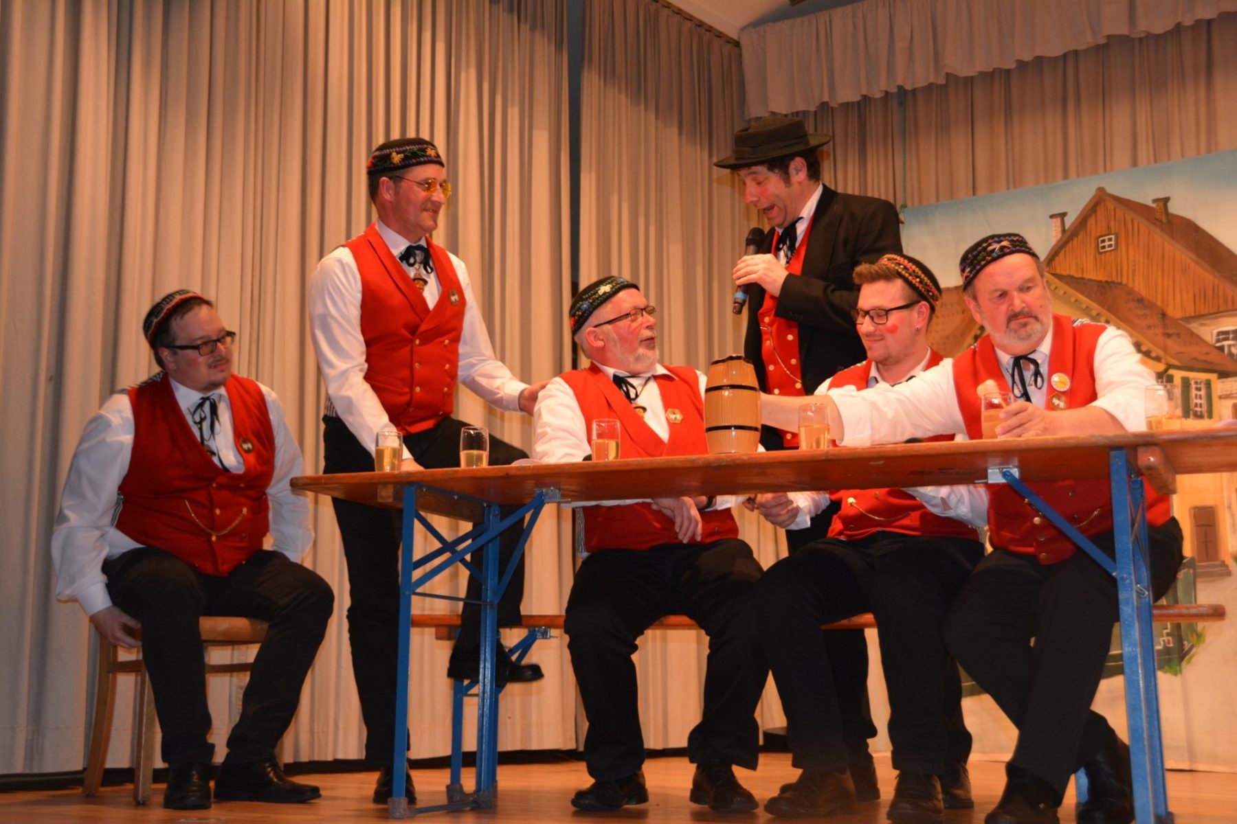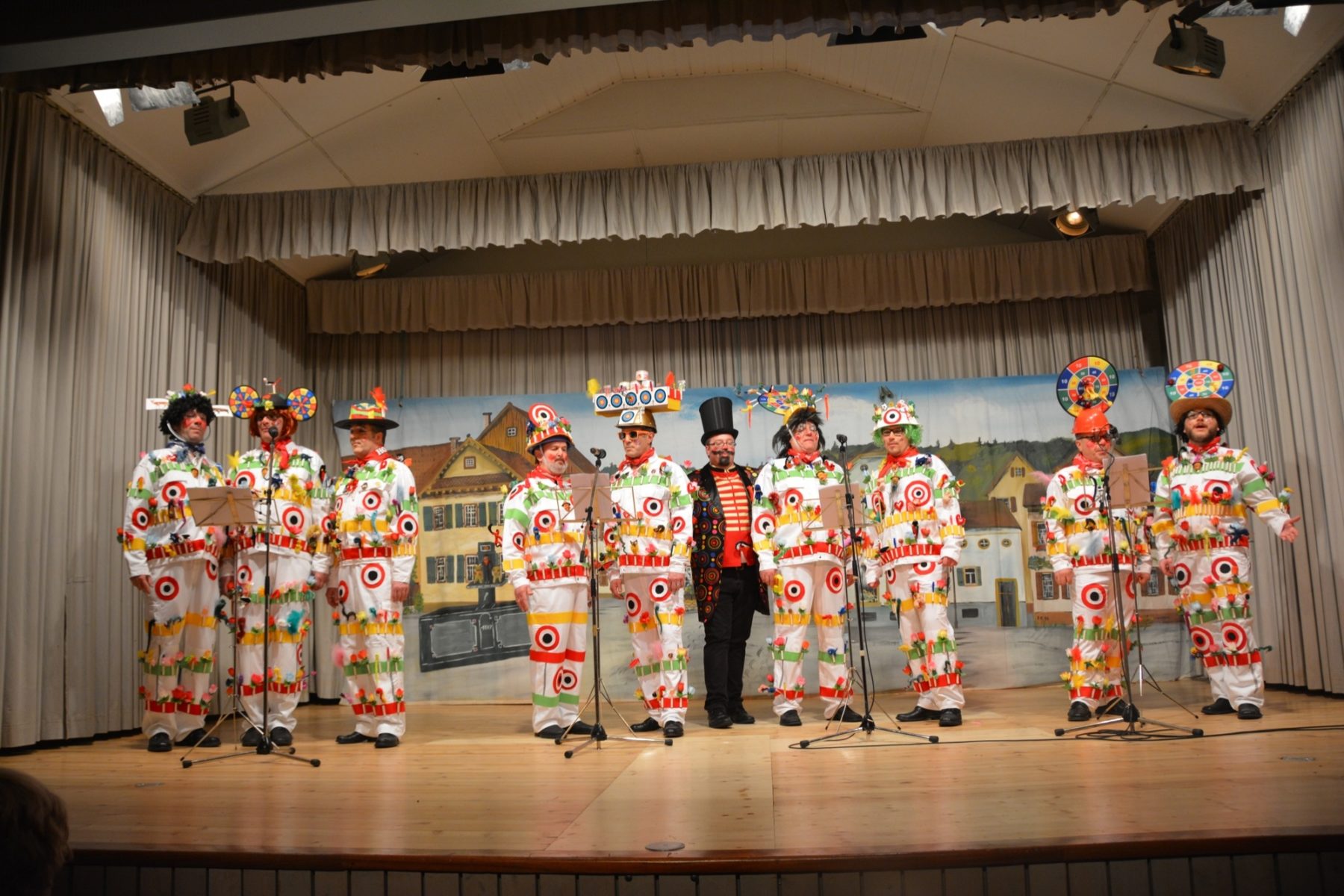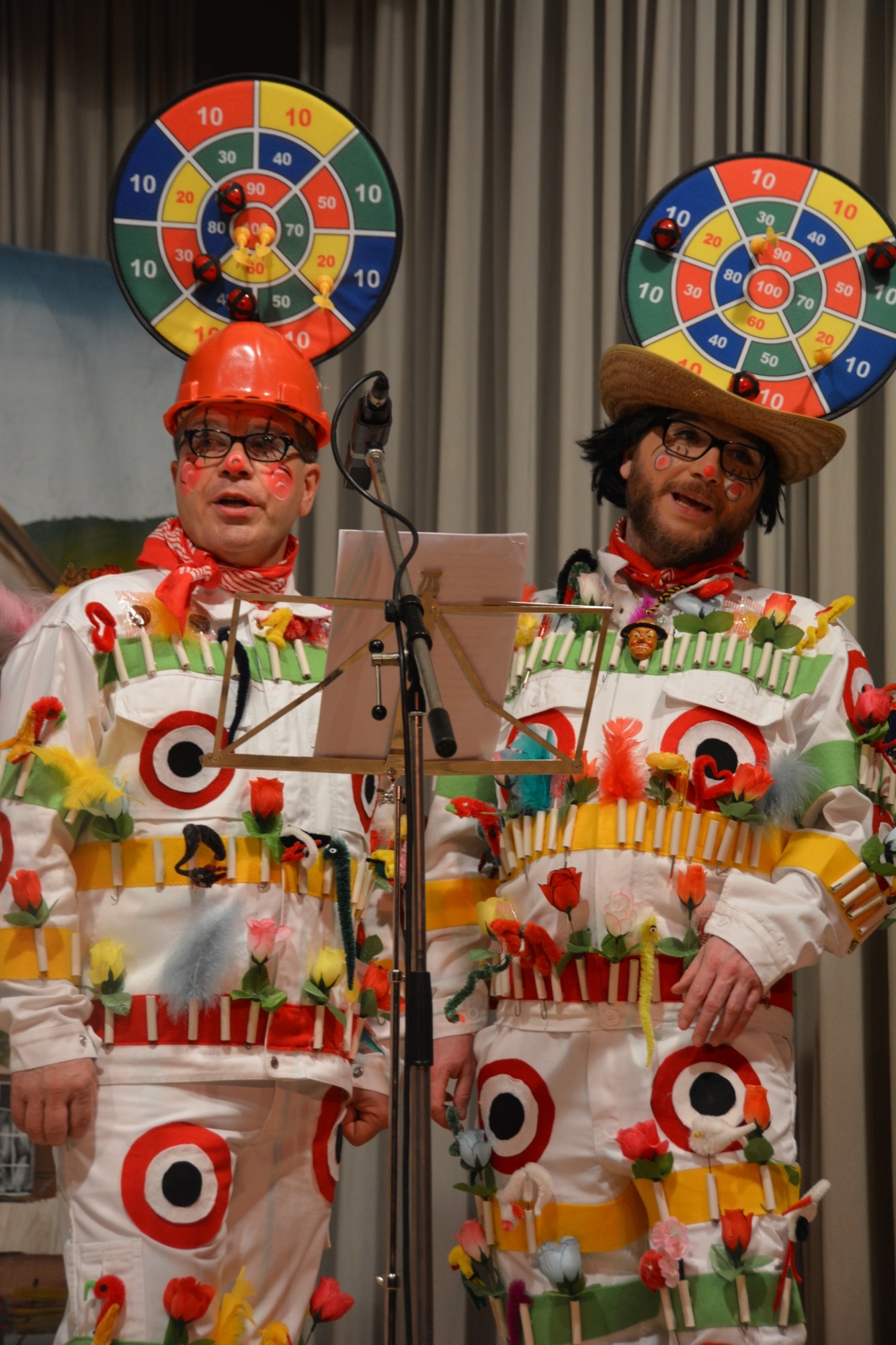 Beim Dörfle-Abend 2017 gab es keine Nieten: Die bauernschlauen Räte, die Koslowskis aus Wanne Eickel, die hübschen Dörfle-Frauen und die tratschenden Deppen deckten alle närrischen Karten auf. Stimmgewaltig zogen die Schießbudenfiguren auf die Dörfle-Spielwiese. Da war jeder Schuss ein Treffer. Aber dennoch musste sich das Narrenvolk in der ehrwürdigen Jahnturnhalle gehörig in Acht nehmen, denn die Dörfle-Schießfiguren schossen auch zurück.
