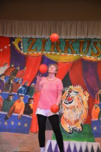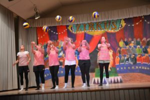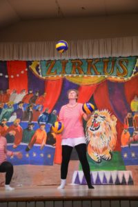 Ganz in ihrem Element waren auch die Ballkünstlerinnen der Volleyballabteilung, die passend zum Zirkusthema mit dem Ball jonglierten – »und sich dabei gar nicht blamierten«. Auch mit ihrem Schwarz-Weiß-Ballett sorgten sie für verblüffende Bewegungen und Figuren.