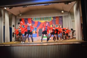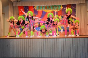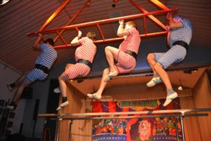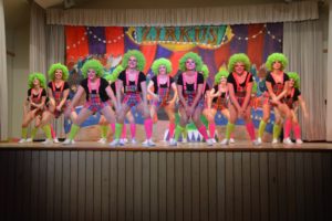 Der Tanzgruppe »Charisma« des TV Zell blieb es vorbehalten, mit ihrem perfekten Showtanz das Finale des mitreißenden Zirkusabends zu bestreiten. Gekleidet in kurze, bunt karierte Clownhosen, mit pinken und neongrünen Socken und einer leuchtend grünen Perücke wirbelten die frechen Clowns kunterbunt durch die Manege und versprühten Spaß und gute Laune. Sie glänzten nicht nur mit einer ausgefeilten Choreographie, sondern neckten das Publikum ganz nach Clown-Art mit ihrem Schalk: machten den Zuschauern lange Nasen oder strecken ihnen die Zunge entgegen. Die Charisma-Mädels kombinierten Power und rasante Schrittfolgen mit Rhythmus und Elan – ein Traum im Turnerball-Zirkus, der erst nach einer Zugabe der 15 Tänzerinnen in eine lange Zeller Fasendnacht mündete.