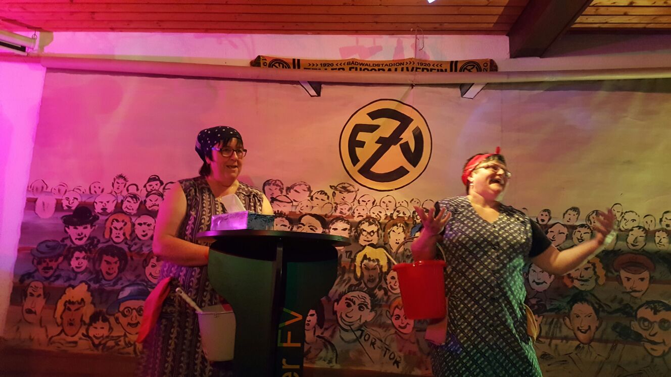 Bevor die »Wäschwieber« die Bühne betraten gab es einen weiteren »Lieblingswitz neu vertont«, der wieder alle Lacher auf seiner Seite hatte. Die »Wäschwieber« hatten so einige Missgeschicke ausgegraben und erhielten immer wieder Szenen-Applaus und schallendes Gelächter. Den Abschluss des Programms, der zugleich ein weiterer Höhepunkt des Abends war, bildete das Männerballett »Aerobic Instructors«, welches um mehrere Zugaben nicht herum kam und so nochmals die Stimmung zum Sieden brachte. Die Tänzer sorgten für ein »atemberaubendes« und tolles Finale, eines kurzweiligen und unterhaltsamen Programms.