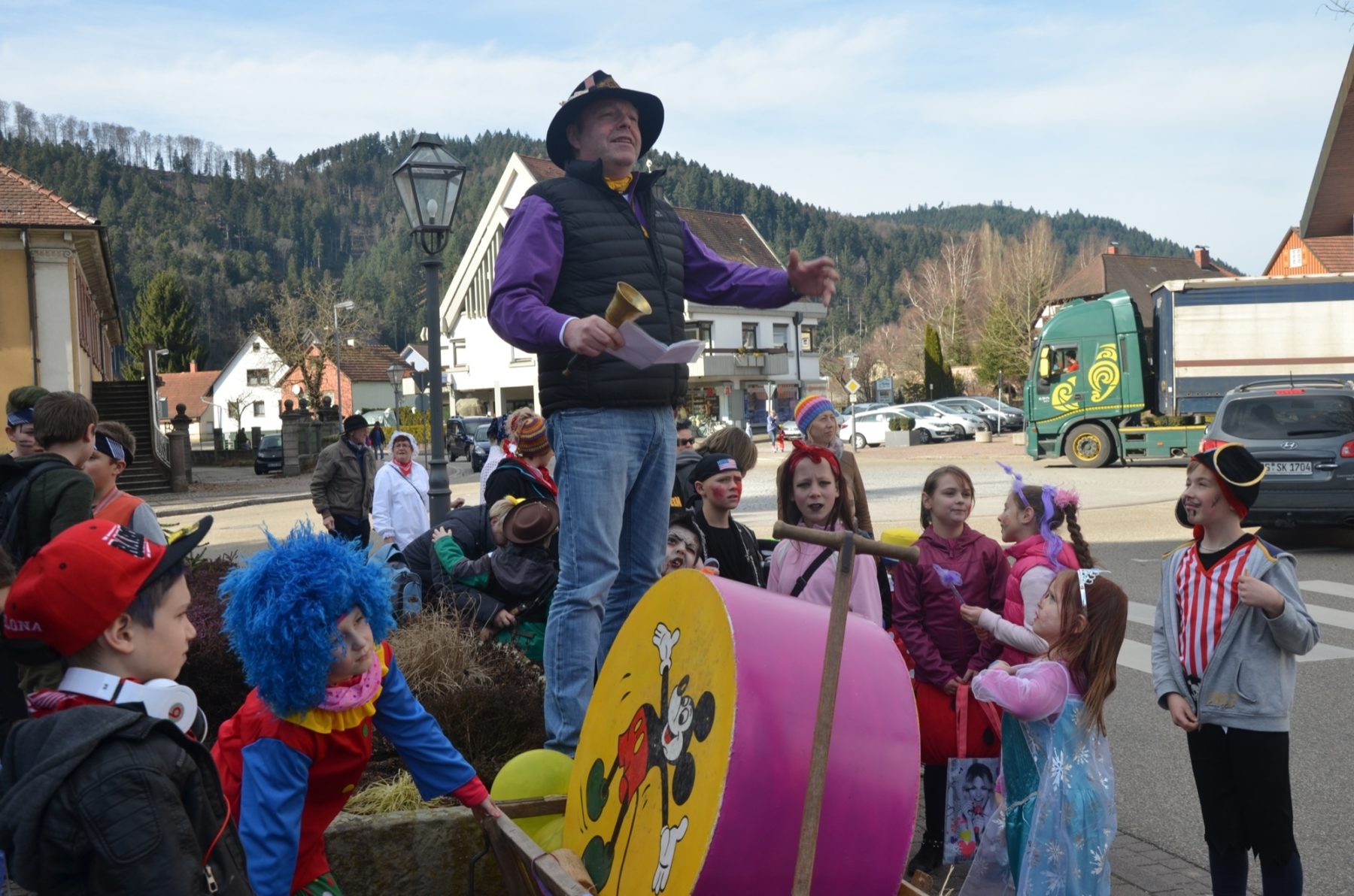 Zunftmeister Clemens Halter läutete und ließ mit laut hallender Stimme das Ausrufen beginnen. »Hoorig, hoorig, hoorig isch die Katz« stiegen Narrenräte, Kinder und Erwachsene in den Fasendruf ein und die bunte Schar setzte sich in Bewegung.