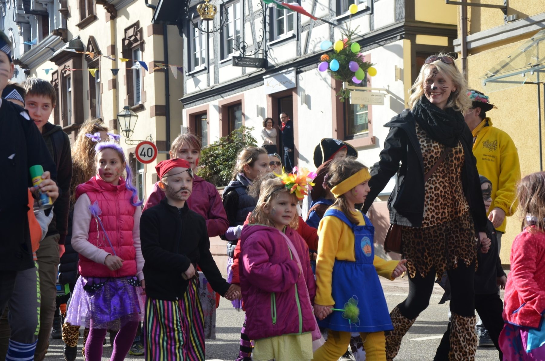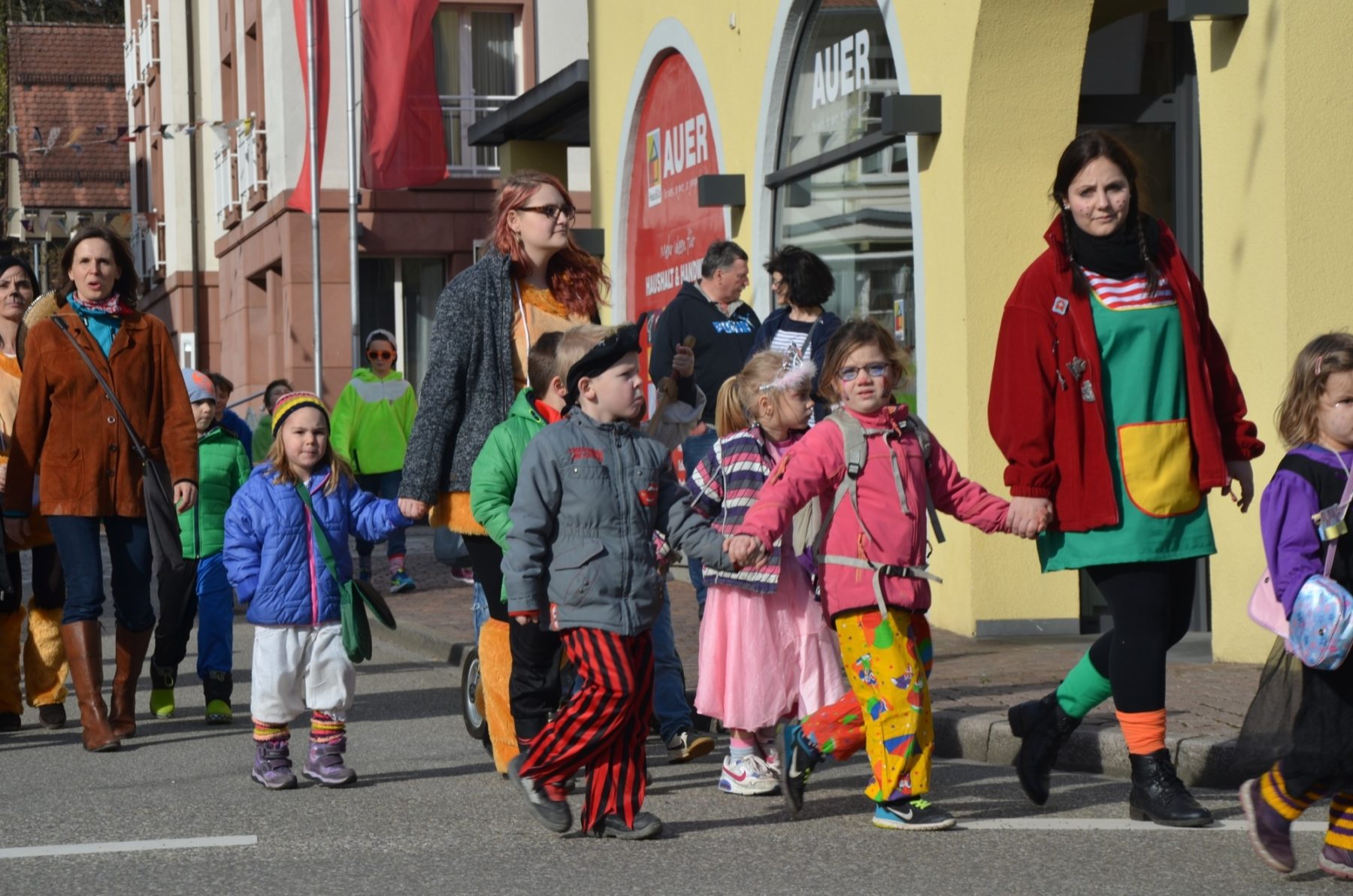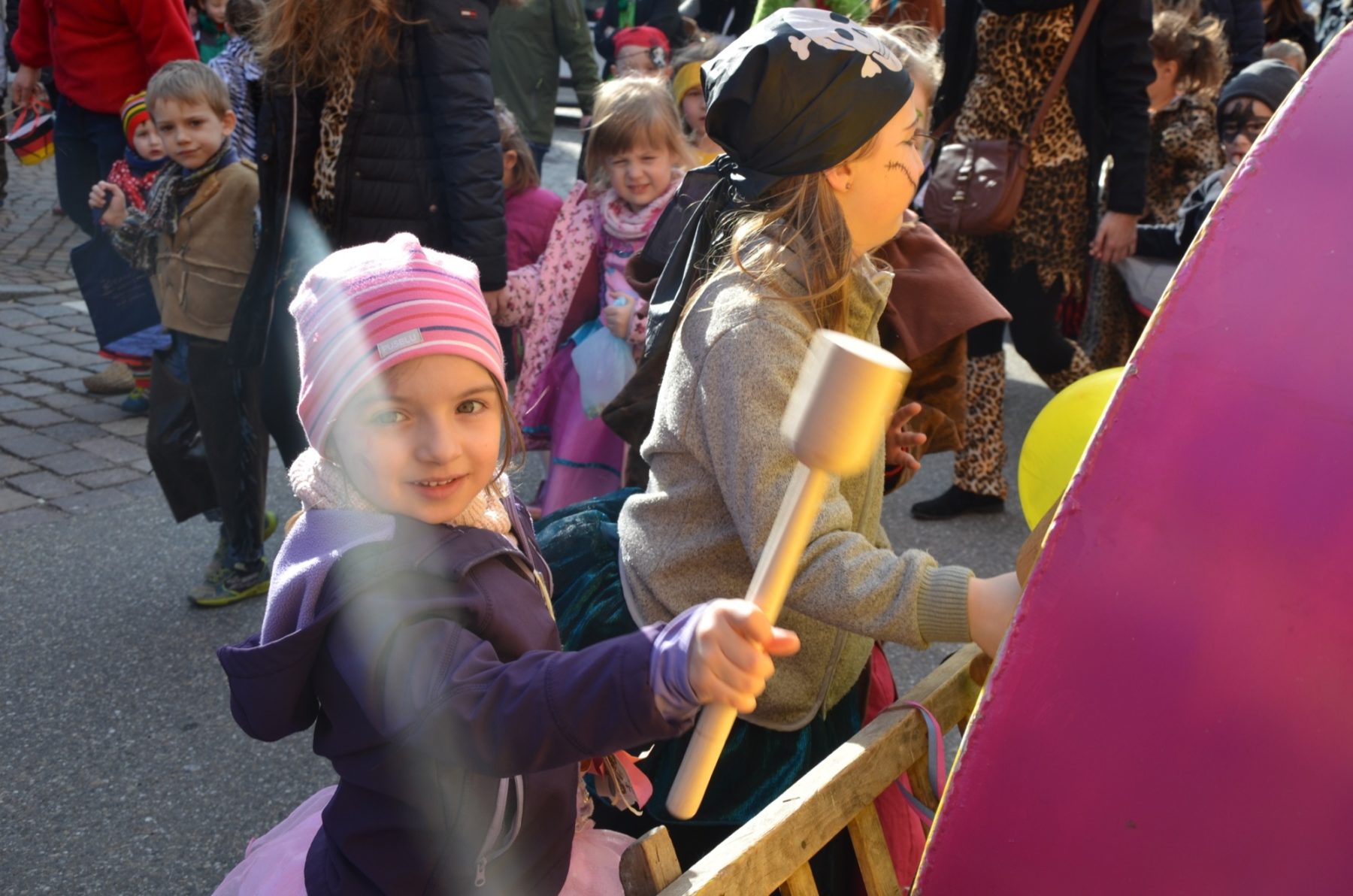 Ingrid Mattheiß und ihr Team ist es Brauch, dass sie den Kindern, die nachmittags in den Kindergarten kommen, anbieten, mit ihnen zum Ausrufen zu gehen. 25 Sprösslinge kamen mit. Und es war schon der zweite Teil ihres närrischen Tagesprogramms: