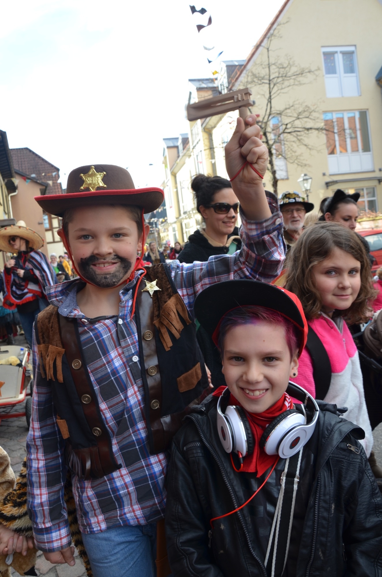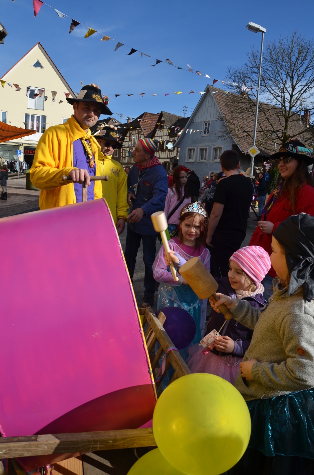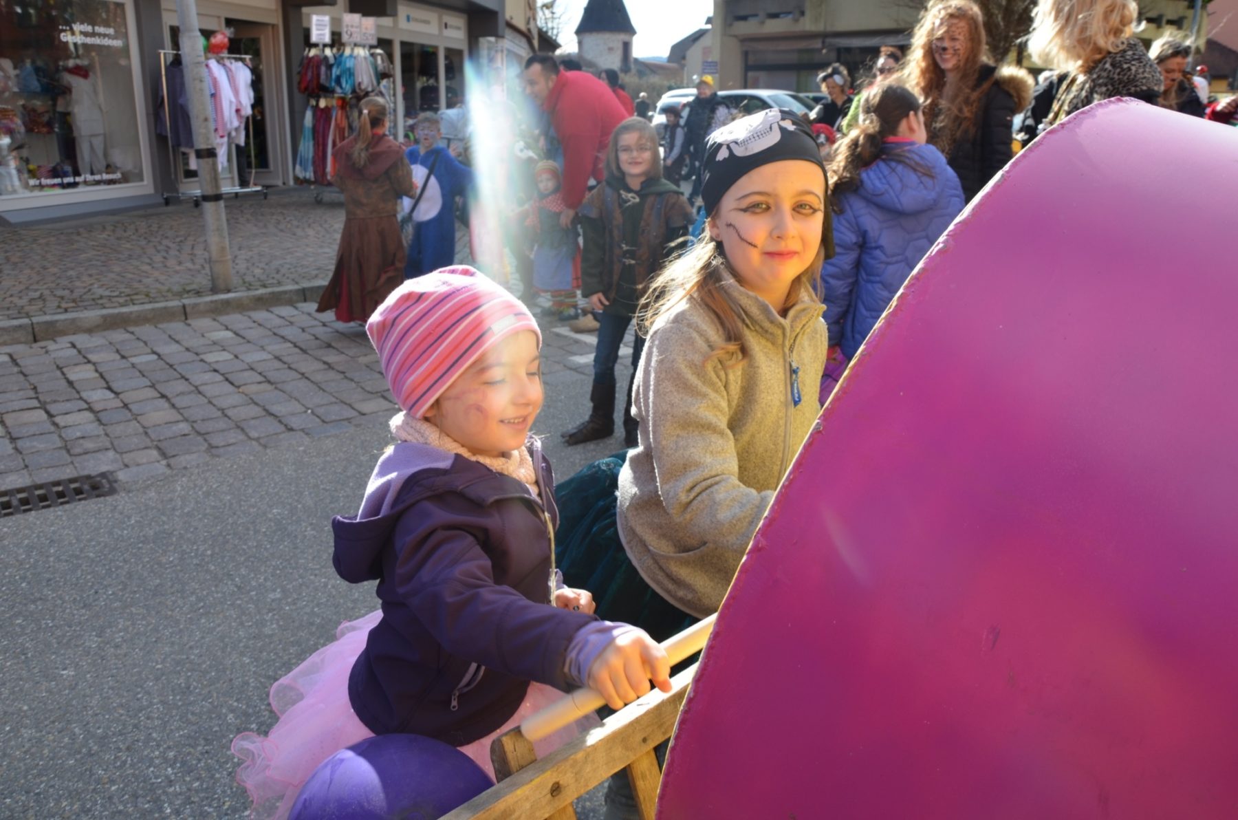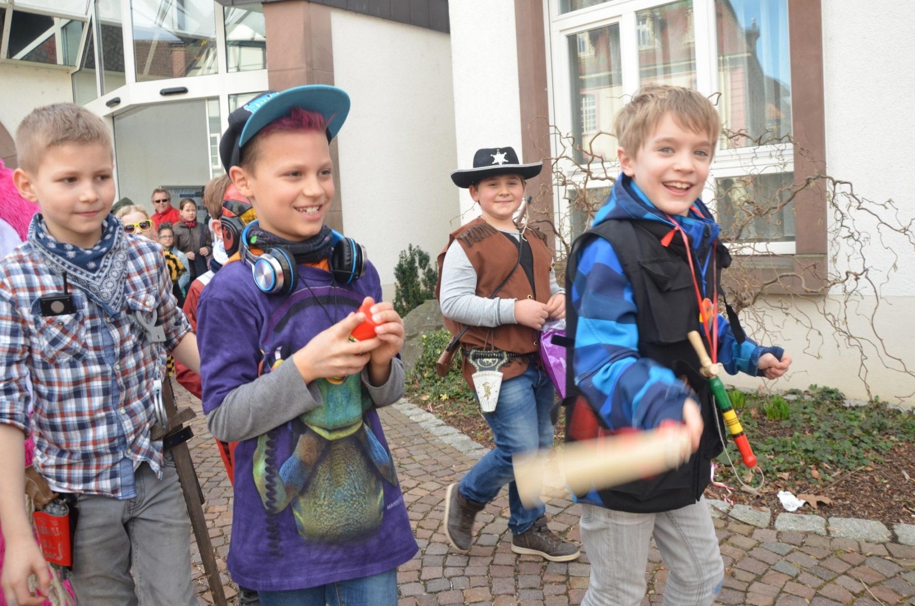 Ingrid Mattheiß und ihr Team ist es Brauch, dass sie den Kindern, die nachmittags in den Kindergarten kommen, anbieten, mit ihnen zum Ausrufen zu gehen. 25 Sprösslinge kamen mit. Und es war schon der zweite Teil ihres närrischen Tagesprogramms: