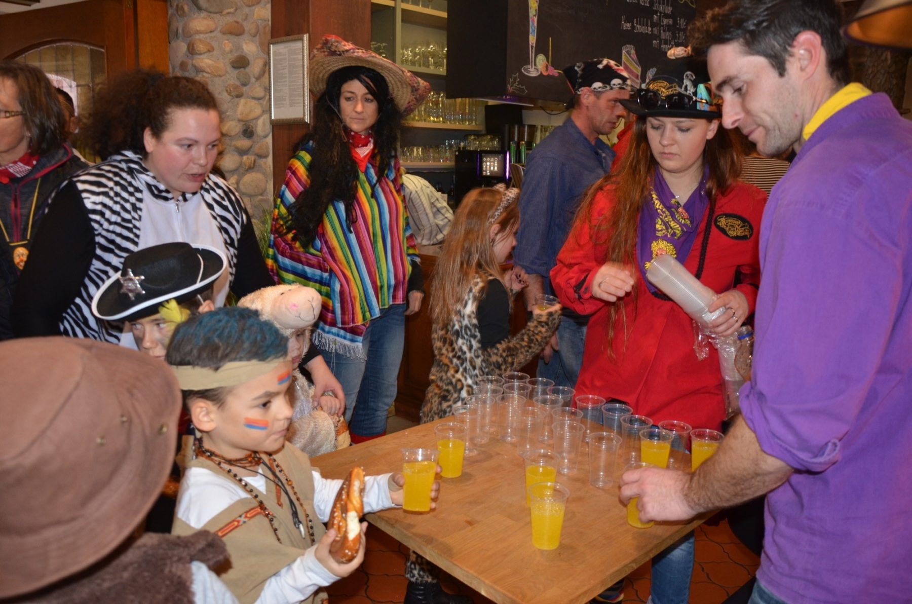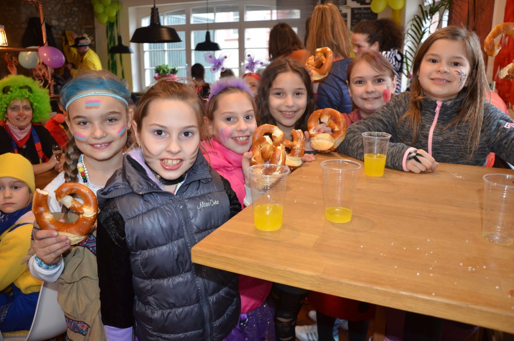 Nachdem nun im gesamten Städtle bekannt war, dass die Narren ab sofort das Sagen haben, führte der Weg die Ausrufer zur verdienten Stärkung. Diese gab es im Café Alt Zell. Eine Runde Fanta für die Kinder spendierten die Wirtinnen und eine Brezelrunde gabe es von der Narrenzunft. Und beides war begehrt, denn Ausrufen mach durstig.