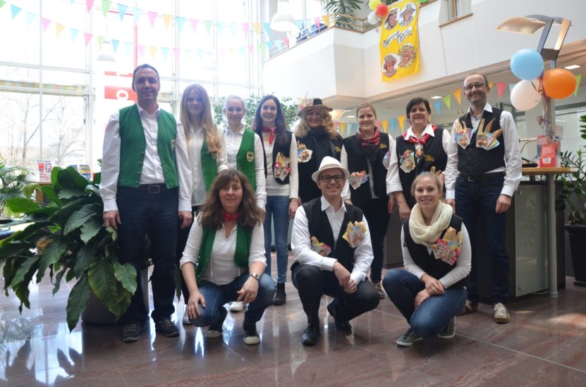 »Alles dreht sich gerade um die fünfte Jahrezeit, die Fasend gehört in Zell und die Fasent in Biberach dazu – und für uns auch«, bekennt Jürgen Schmider, Regionalleiter der Sparkasse Haslach-Zell, Farbe (vorne, Mitte).