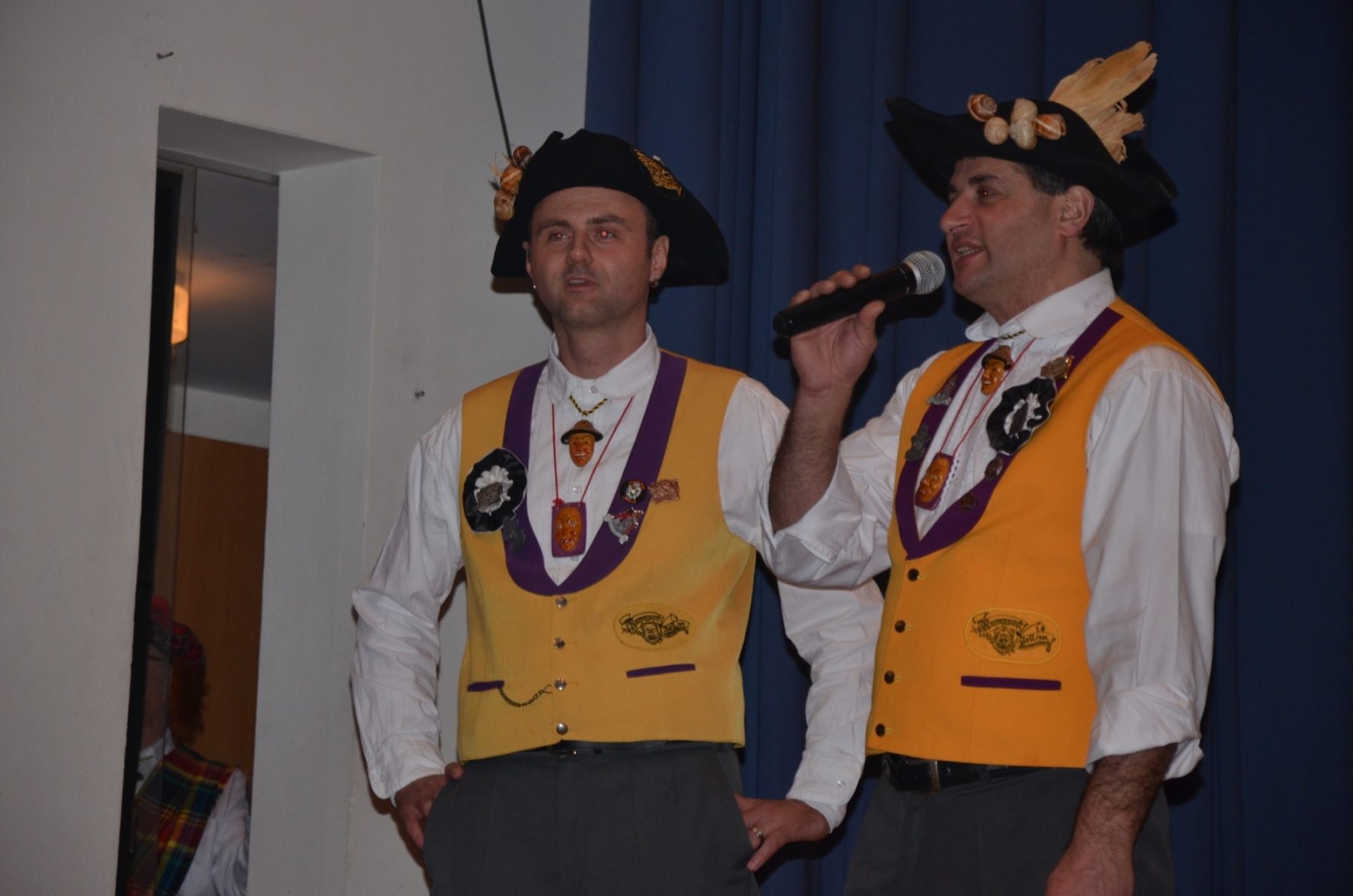 Nach diesen zwei Meisterwerken zeigte sich der Gott der Preismasken schon sehr zufrieden mit seinem Künstler und schickte weitere Zutaten. Was das wohl für Zutaten sind? Natürlich! An einer mannshohen Fasend-Litfaßsäule waren sie alle angebracht: Die vier Dekore der Zeller Narros, ein Bild von jedem Narrenrat, die Wappen der Fasendsgemeinschaften und zwei Holzmasken.