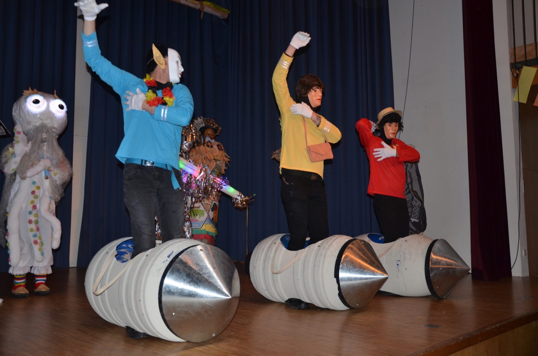 Gott merkte – dem das kreative Schaffen gefiel – dass viele weitere Hände gebraucht werden und schickte futuristische Künstler: Wie Mr. Spock oder die Space-Cowboys von Bully Herbig sahen diese aus. Mit ihren Raumschiff-Tonnen kamen sie auf die Fasendsbühne. »Gott sah, dass es gut war« und stellte sein Werk unter einen guten Stern, so dass die Fasend wächst und gedeiht bis in alle Ewigkeit.