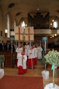 Die Gemeinschaft mit Jesus begann für die Erstkommunikanten in der Taufe, als sie zu Teilhabern an Jesus Christus wurden und im Sakrament der Taufe das Zeichen des neuen Lebens und der österlichen Hoffnung empfingen. Dieses Geheimnis des Glaubens bekräftigten sie im Gottesdienst während der Tauffeier, nachdem sie ihre Kerzen an der Osterkerze als dem Symbol für den Auferstandenen entzündeten und ihr »Ja« zu Jesus Christus und seiner Kirche in der Tauf-Erneuerung sprachen.