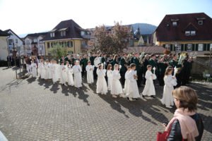 Der Musikverein Unterharmersbach begleitete traditionell die Kinder am Samstagmittag zunächst von Unterharmersbach nach Zell und dann mit einem Choral auf ihrem kurzen Weg vom Rathaus zur Stadtkirche. Am Sonntag übernahm die Stadtkapelle Zell diesen besonderen Dienst.