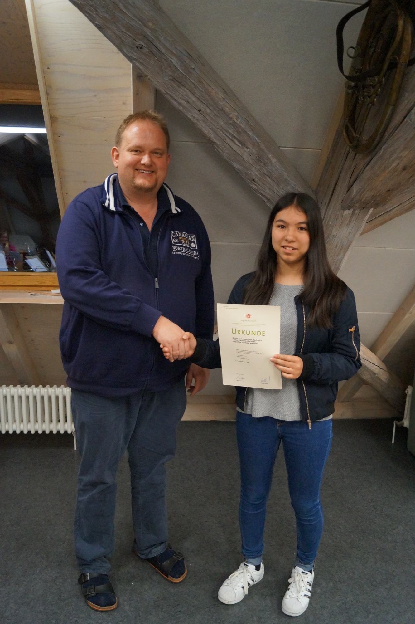 Die drei setzten sich gegen viele talentierte Nachwuchs-Musiker aus der Region durch. Bereits in der Grundschule hatte Carina Carbone ihre musikalische Ausbil-dung mit dem Blockflöten-Unterricht begonnen. Beim »Zelli«-Ferienprogramm hatte sie später das erste Mal versucht, mit einer Klarinette einen Ton zu erzeugen. Sie war sofort von ihrem jetzigen Instrument angetan und entschied sich 2011 dazu, Klarinettenunterricht zu nehmen. Heute, sechs Jahre später, gewann sie im Trio an der 1. Stimme mit Stücken von Mozart und Jenõ Takács den Nachwuchswettbewerb. Nächstes Jahr möchte sie im Solowettbewerb antreten. Die Stadtkapelle Zell a. H. freut sich über diese außerordentliche Leistung und wünscht ihr für die Vorbereitungen und den Solowettbewerb 2018 bereits heute viel Erfolg.