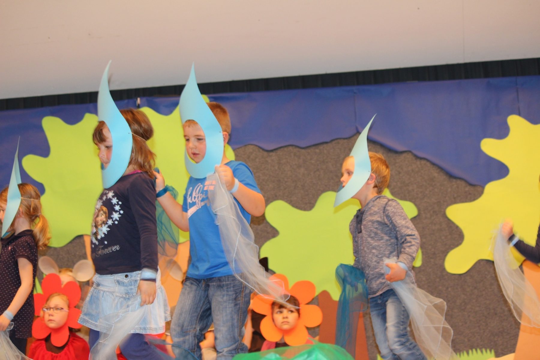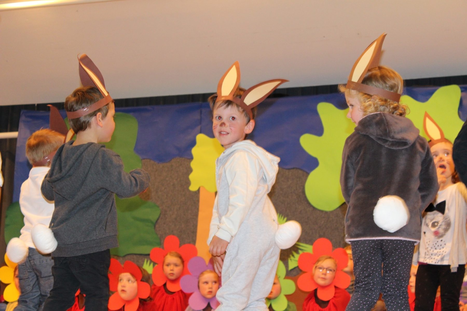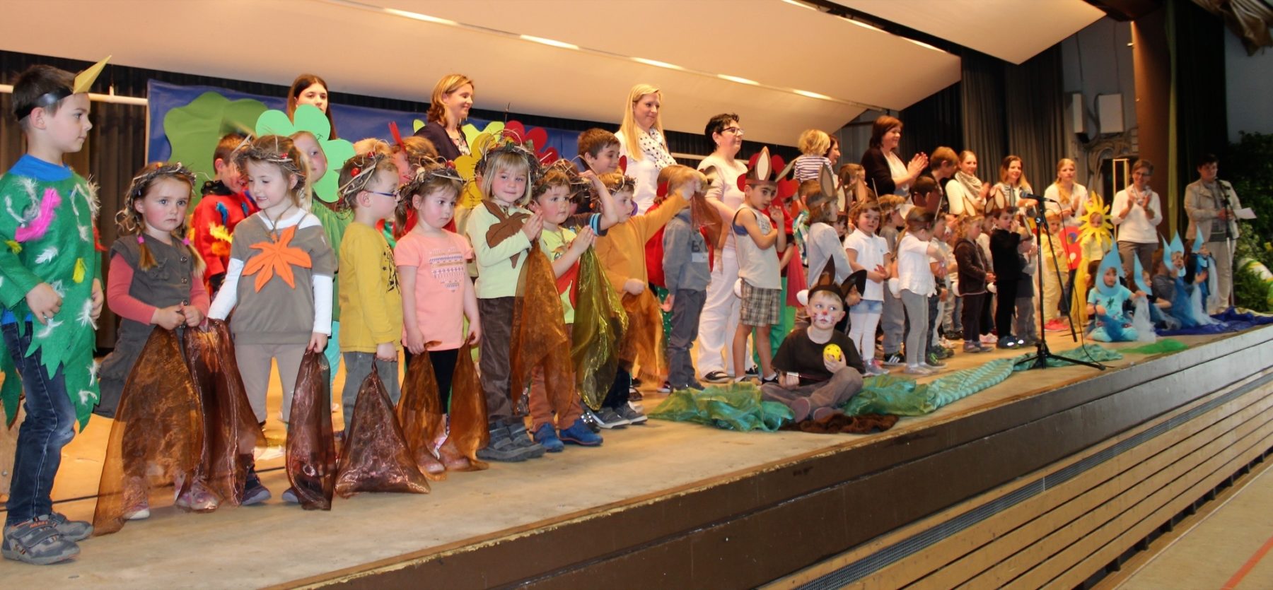 Foto: KindergartenAuf der Bühne zeigten die Kinder ihren Eltern, Großeltern und allen Besuchern ein farbenfrohes Programm. Gespielt wurde die Geschichte von »Peter Pinsel« zum gleichnamigen Kinderbuch. Darin verwandelt der Held der Geschichte eine graue, farblose Welt mit Hilfe des Regenbogens in eine schöne, farbenfrohe Welt. Die Kinder führten sehr abwechslungsreich mit Liedern, Gedichten und farbenreichen Kostümen als bunte Blumen, lustige Mäuse, Schneeflocken, Wasserdampf und niedliche Häschen durch das Programm. So verbrachten alle einen schönen gemeinsamen und wortwörtlich bunten Nachmittag.