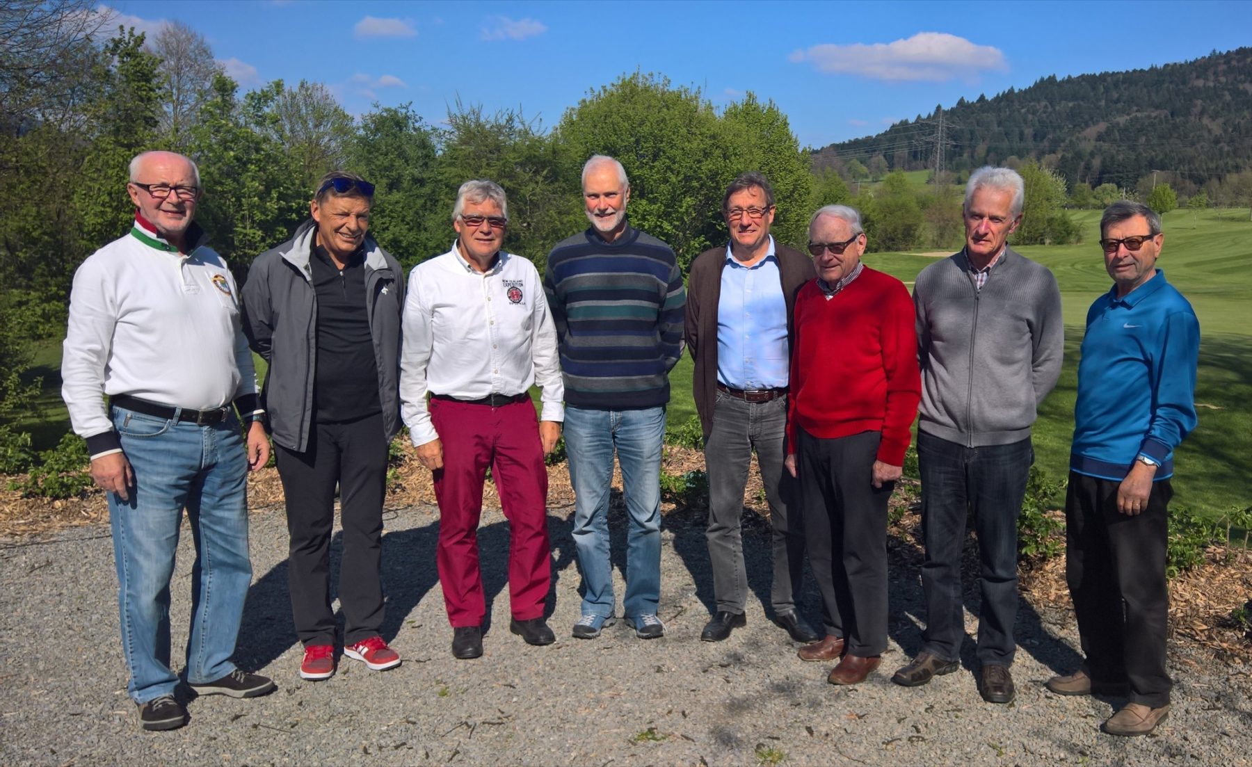Die Sieger mit dem Jubilar (von links): Seniors-Captain Peter Sindl, Achim Herbert, Hans-Joachim Domfeld, Erhard Groß, August Geiger, Uwe Eisleben, Rolf Breithaupt und Jubilar Otmar Ritter.