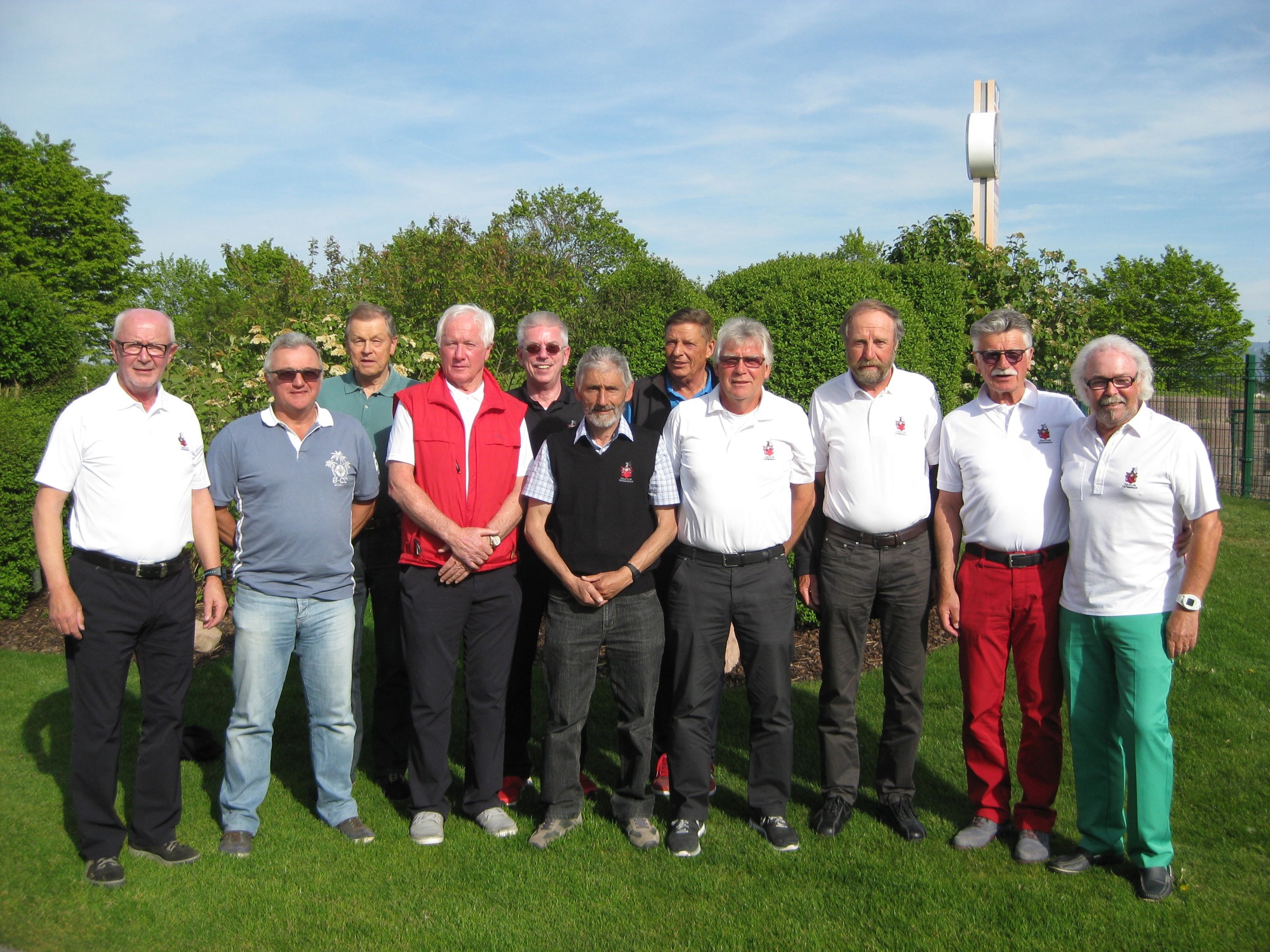 Die Gröbernhof-Mannschaft (von links): Seniors-Captain Peter Sindl, Walter Hildbrand, Peter Singler, Ernst Möschle, Fred Gärtner, Hermann Krämer, Achim Herbert, Hans-Joachim Domfeld, SBR- Beauftragter Lothar Menke, Uwe Czelinski und Kurt Kiefer. Foto: Winfried Köninger